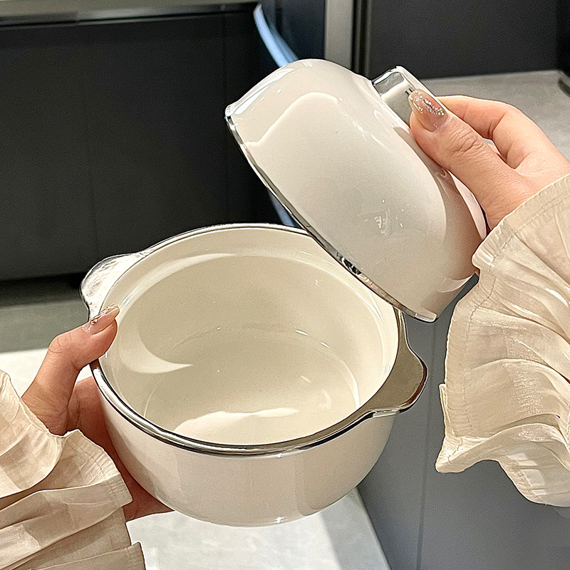 高颜值带盖陶瓷面碗套装 女生可爱简约汤碗燕窝炖盅碗甜品碗饭碗