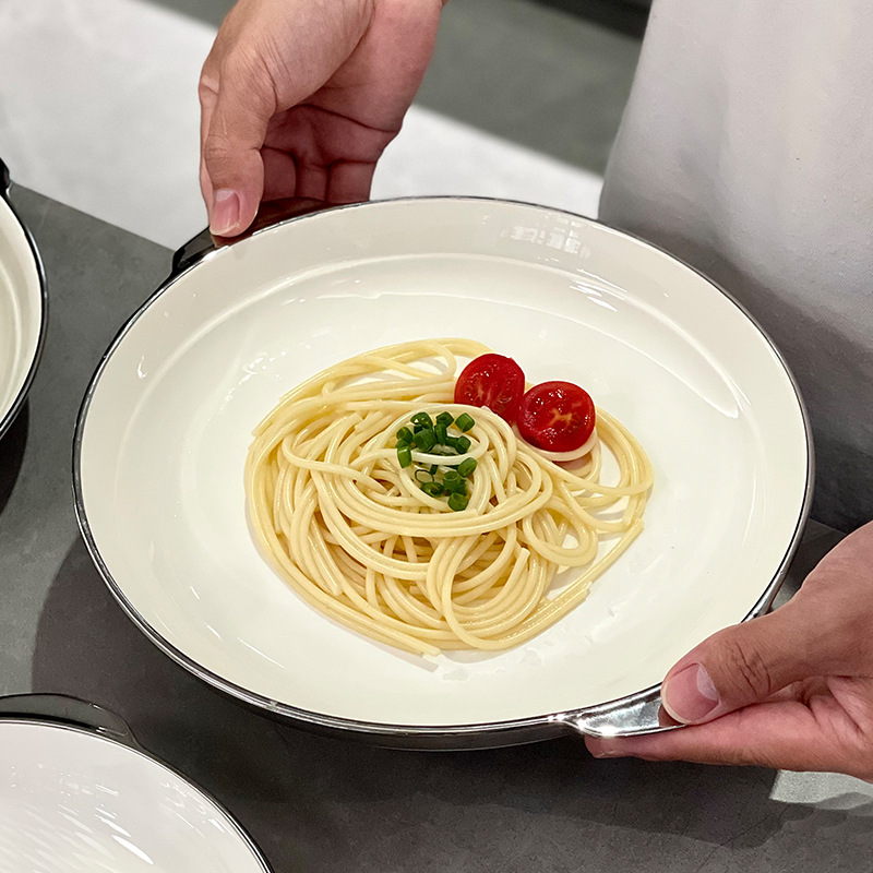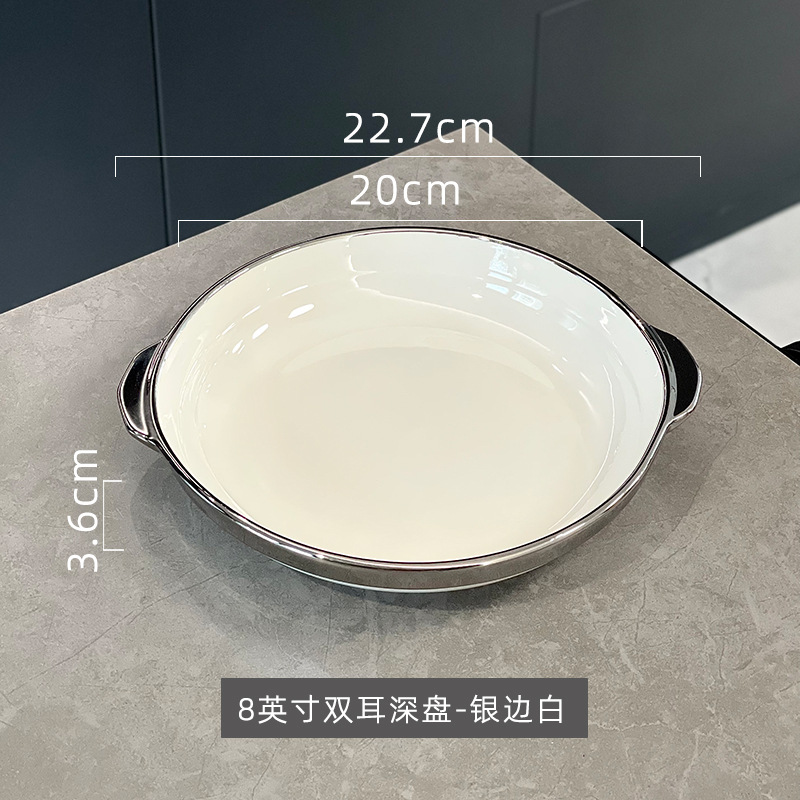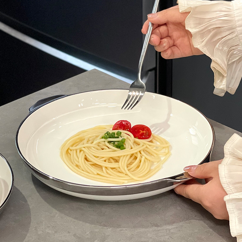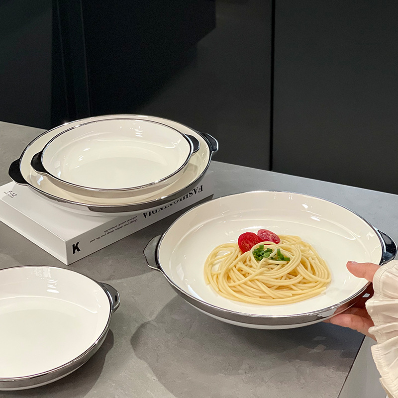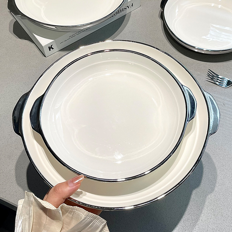双耳盘陶瓷盘子简约高级感饺子盘牛肉炒饭盘汤盘菜盘意面盘