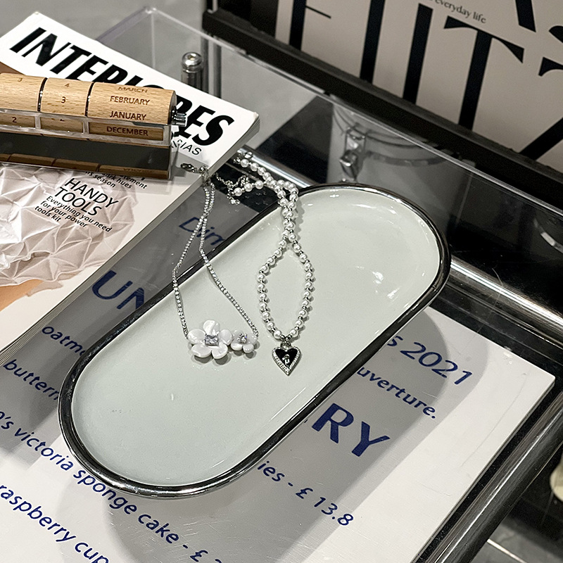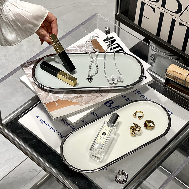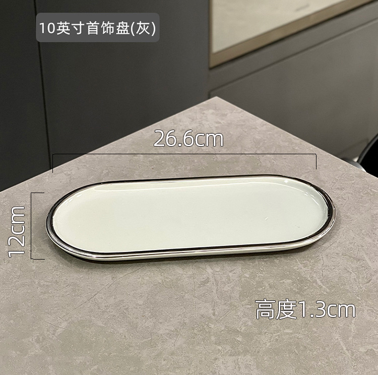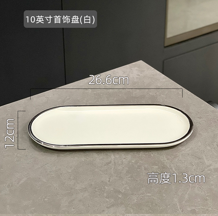 轻奢椭圆盘长方形托盘陶瓷ins风首饰收纳盘甜品盘西餐盘寿司盘