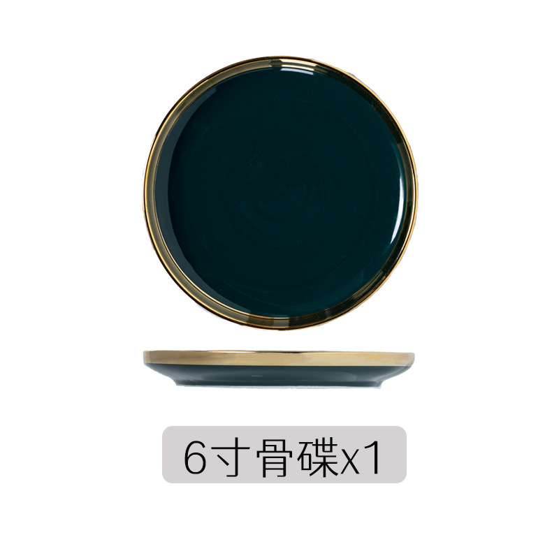 高档祖母绿吐骨头盘骨碟6寸盘家用北欧小盘子垃圾陶瓷盘创意碗碟