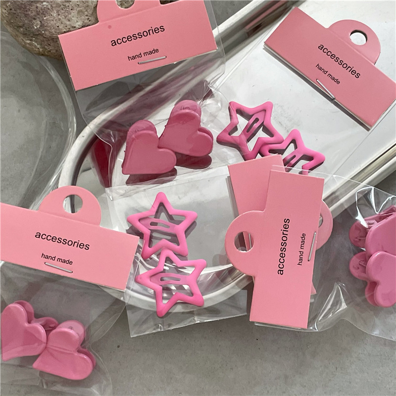 ✨ 玫红少女系爱心侧边刘海夹 ✨