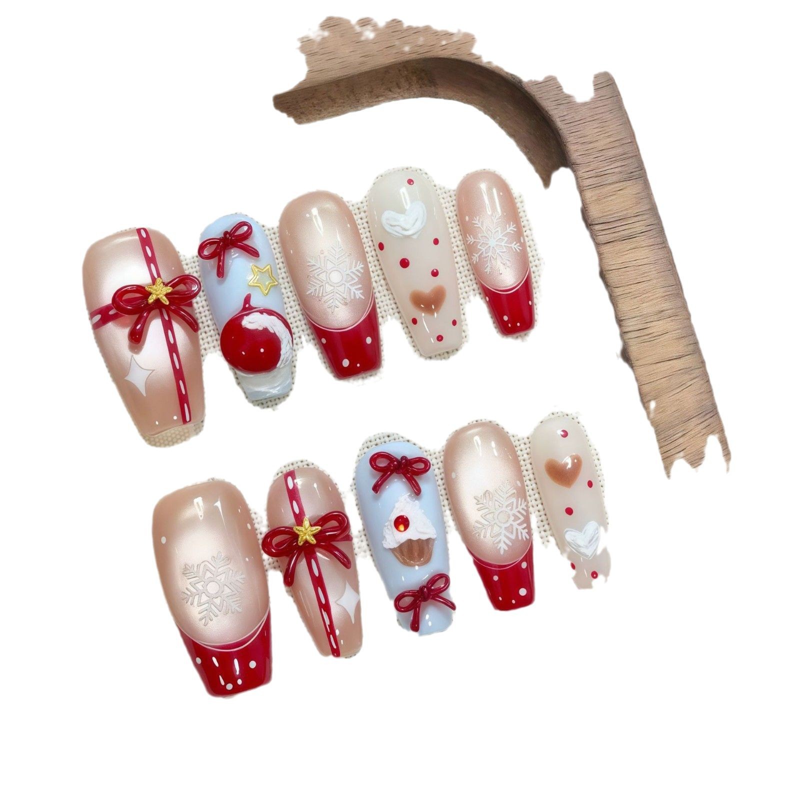 艺禾 草莓巧克力蛋糕显白圣诞纯红色闪闪法式亮亮穿戴可拆卸美甲