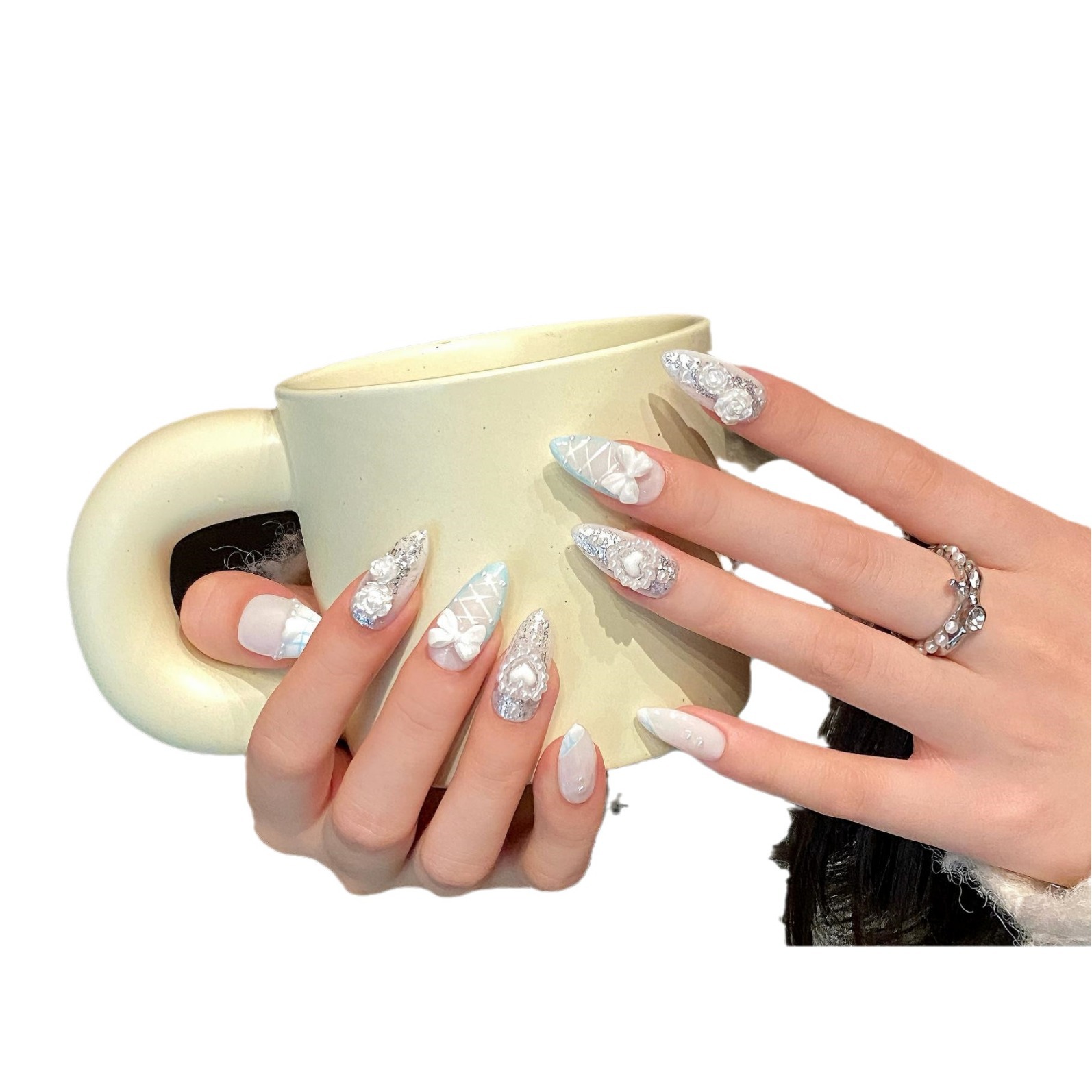 原创实拍手工美甲 甜酷风蓝色可爱蝴蝶结百搭显白穿戴甲成品贴片