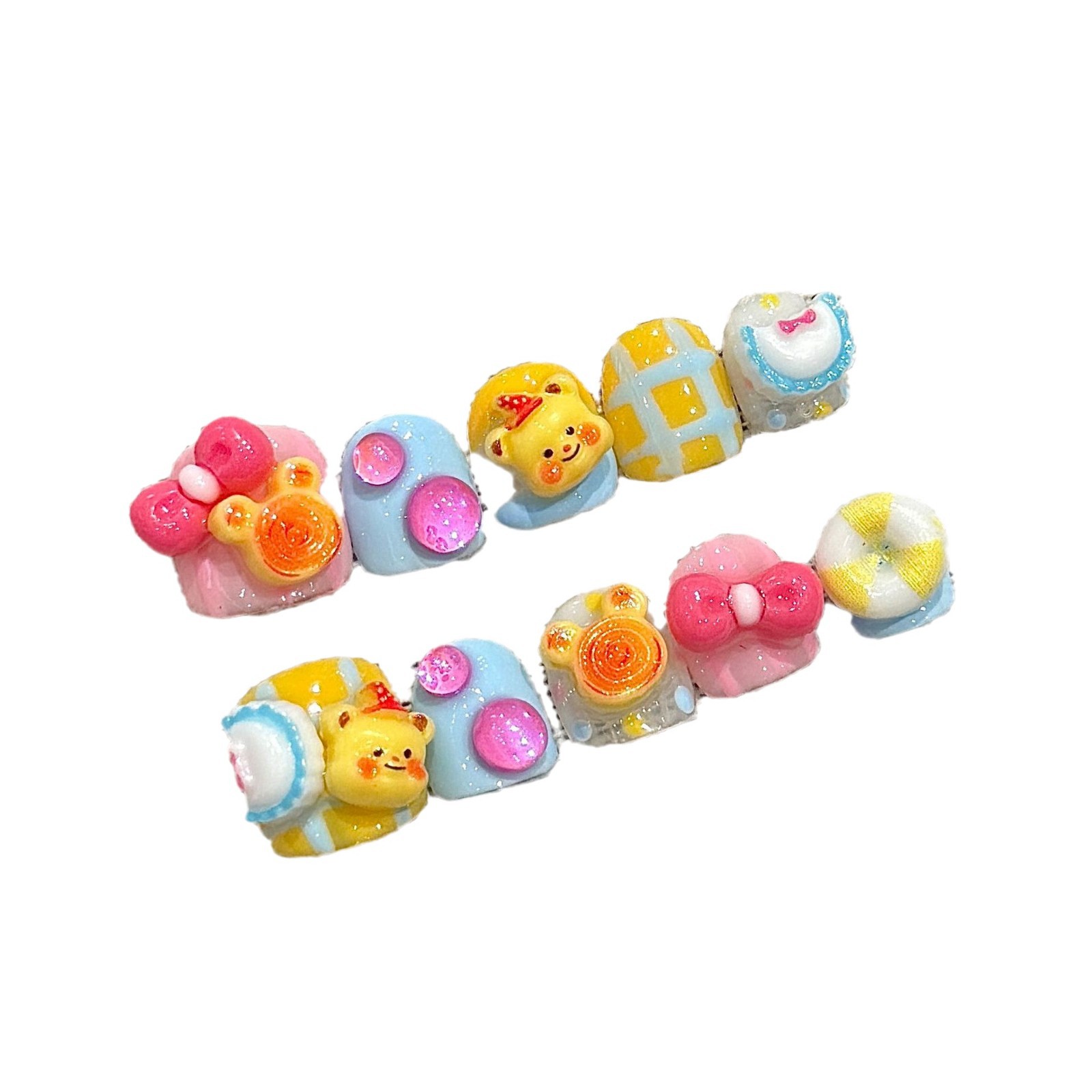 【艺禾儿童甲】纯手工穿戴甲可爱风维尼小熊3-12岁小朋友无毒批发