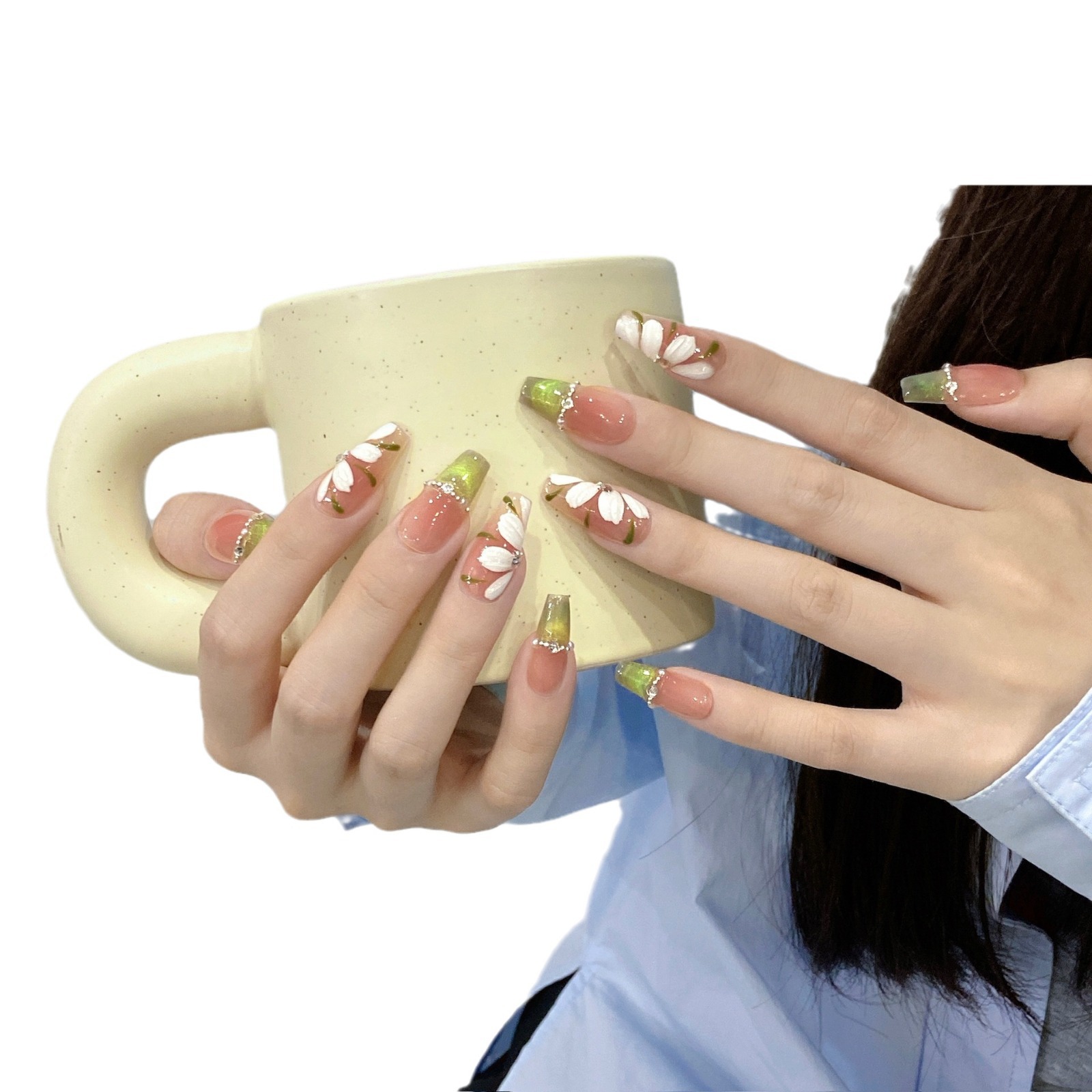 纯手工光疗穿戴甲绿精灵冰花穿戴甲批发成品重复使用美甲贴片款