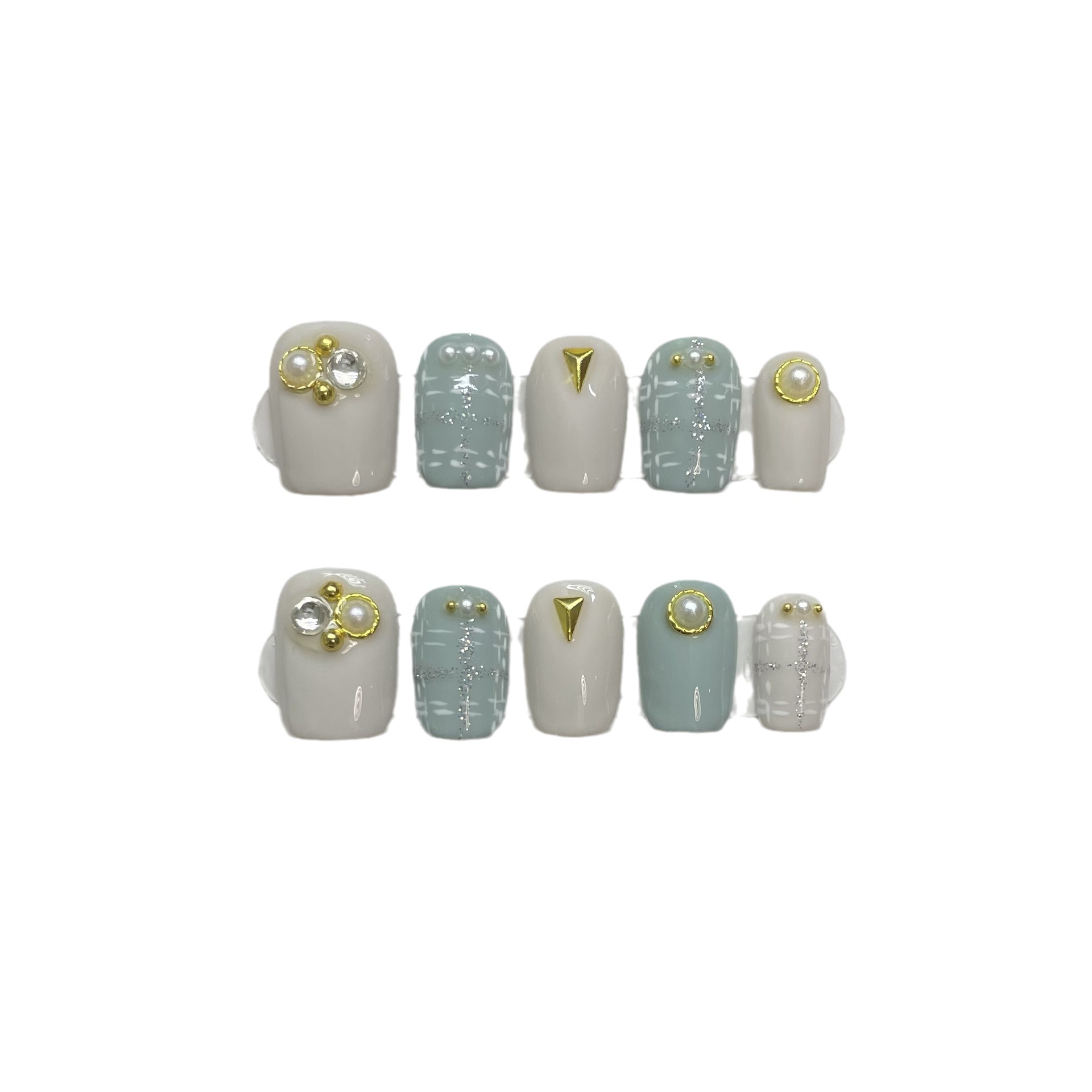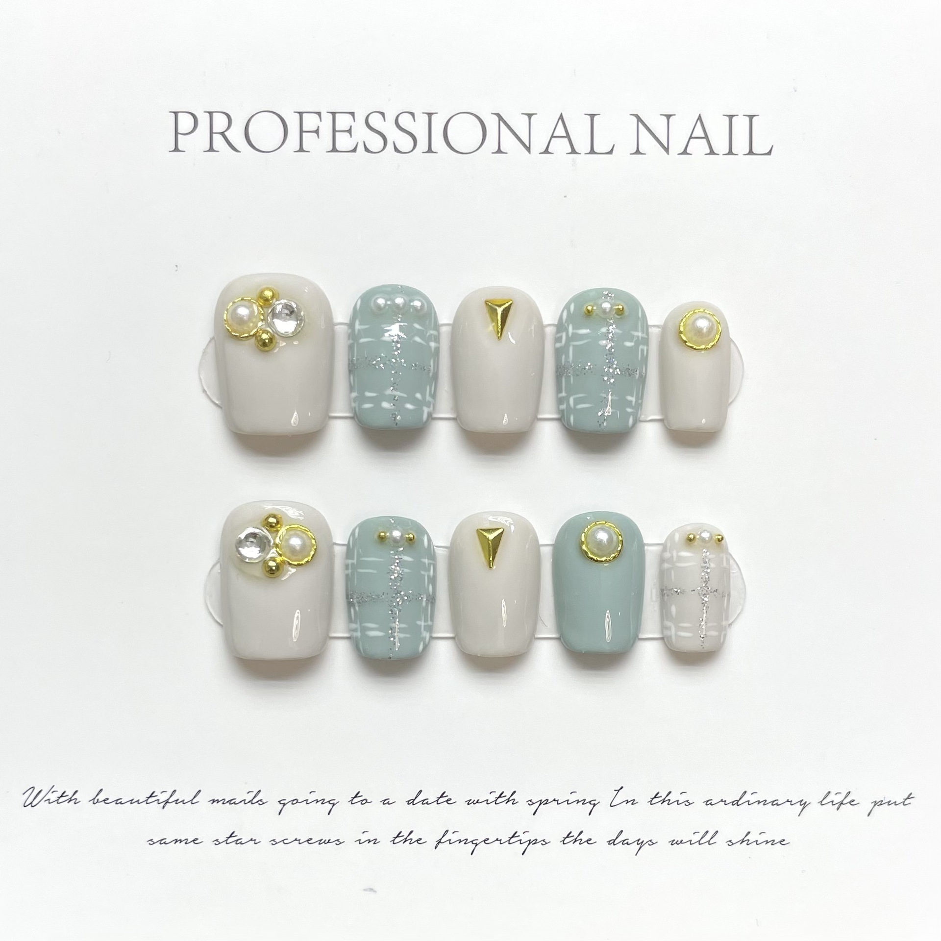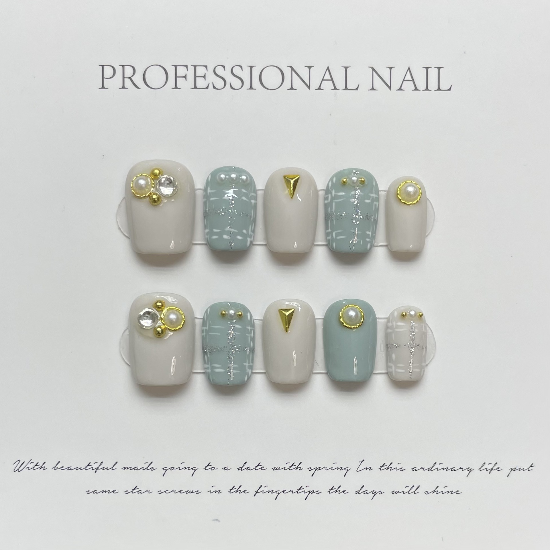 【原创实拍】显白温柔灰色小香风珍珠美甲成品手工穿戴甲工厂批发