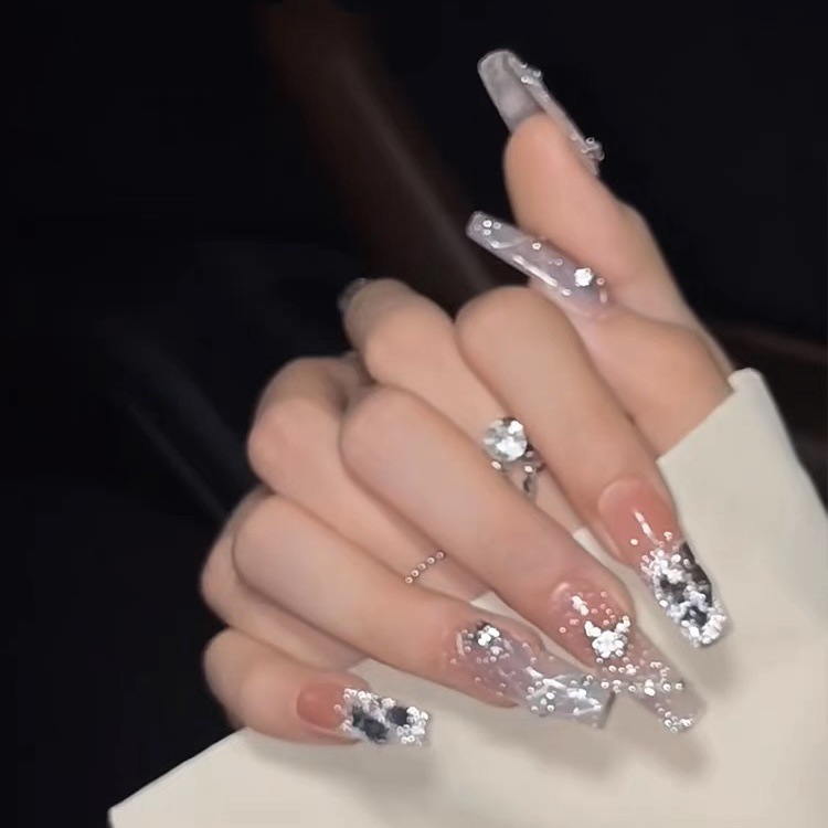 网红爆闪满天星立体蝴蝶丝带美甲成品手工穿戴甲贴片防水拆卸美甲