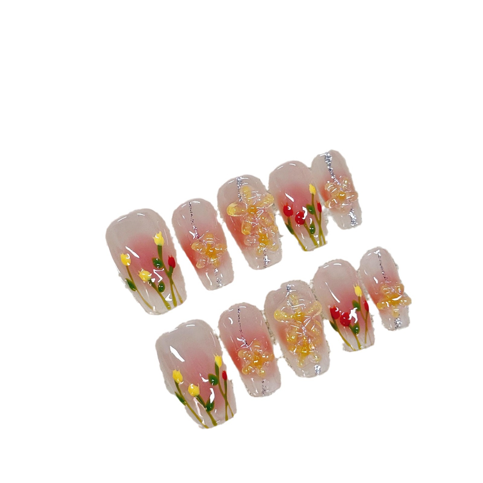 纯手工穿戴甲美甲立体小花冰透裸色纯欲短款郁金香爆款小红书显白