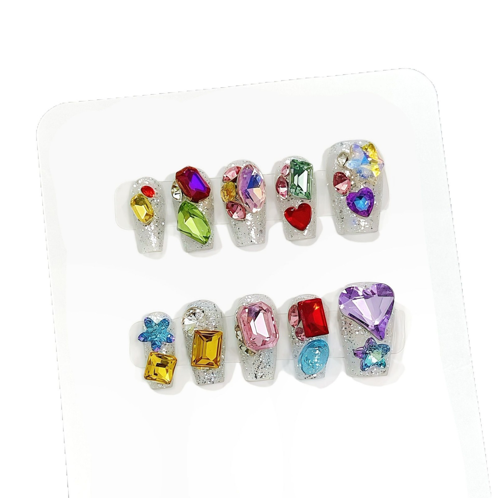 艺禾美甲 全家福宝石盒糖果汽水满钻小众风亮闪爆多钻手工穿戴甲