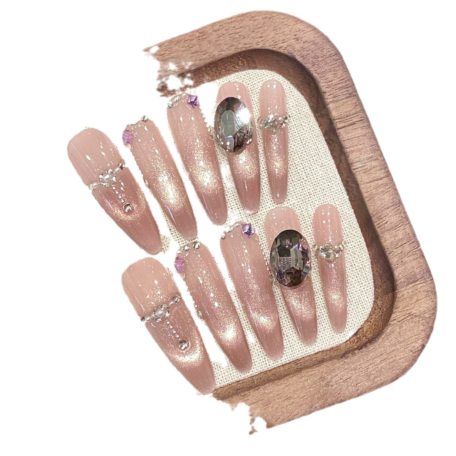 艺禾美甲 纯欲粉色渐变法式微笑猫眼鸢尾气质爆闪堆钻显白穿戴甲