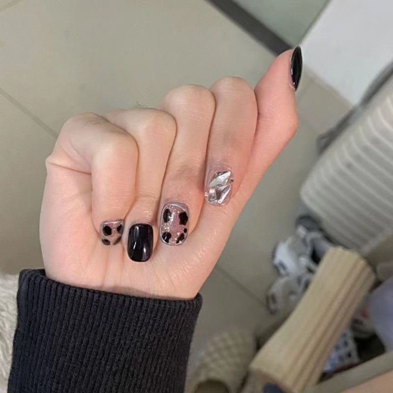 手工光疗穿戴甲 黑豹纹穿戴甲批发成品重复使用美甲贴片
