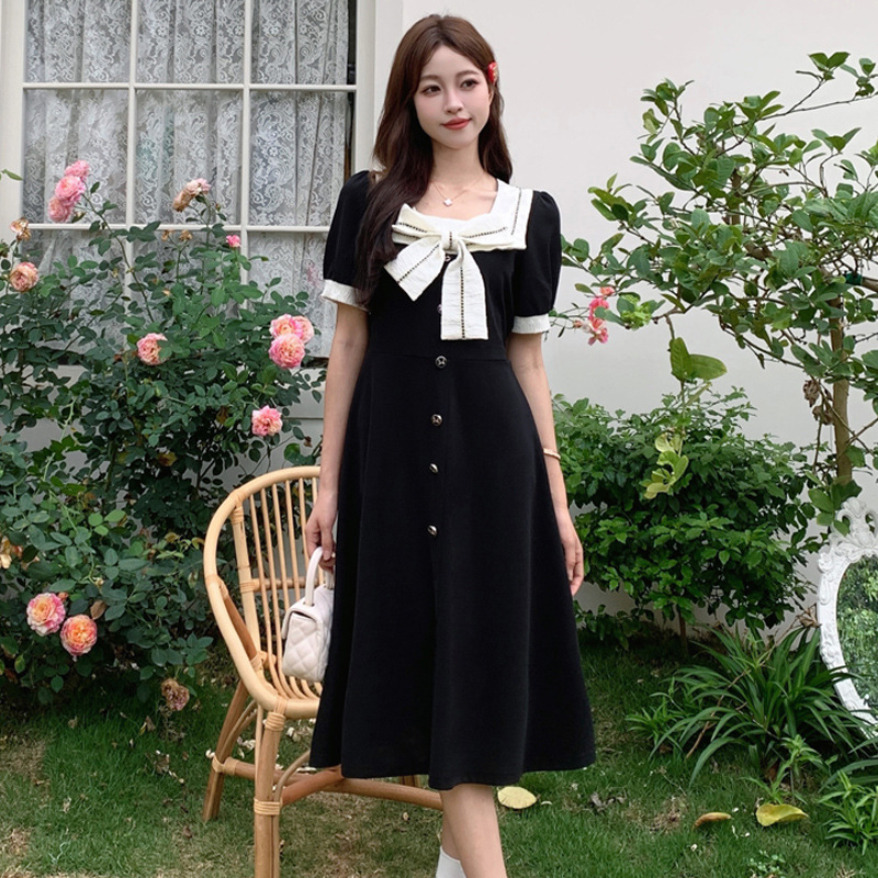实拍现货~大码微胖女生法式蝴蝶结显瘦连衣裙小众设计感胖mm裙子