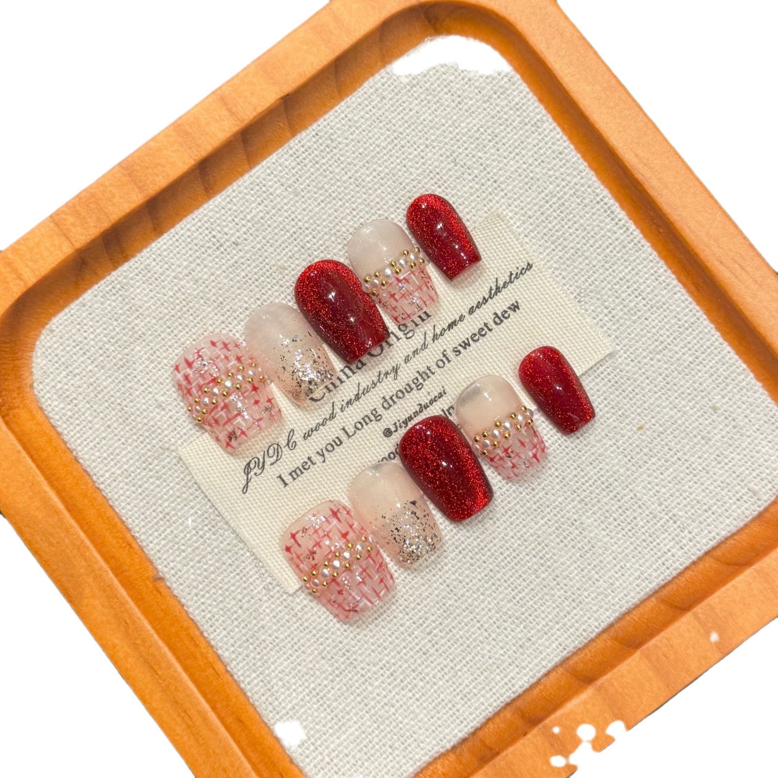 艺禾【立体小香风】纯手工小香风温柔色系穿戴甲可批发假指甲