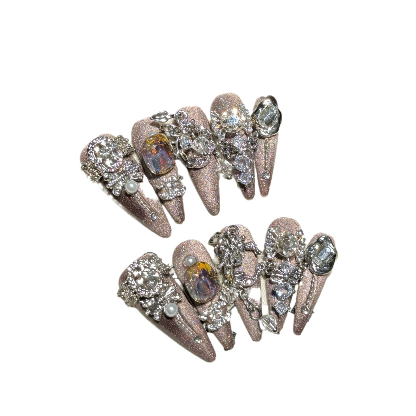 艺禾满天星魔镜猫眼纯手工穿戴甲重工东洲钻满手满锆奢华手工美甲