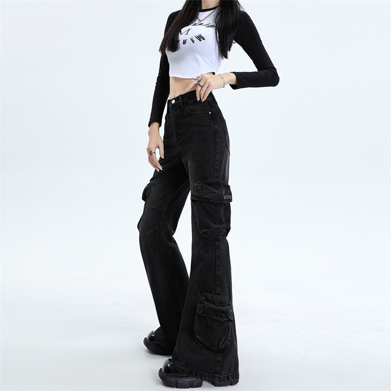 铭海美式辣妹工装裤女秋季新款高腰显瘦宽松微辣牛仔裤女长裤