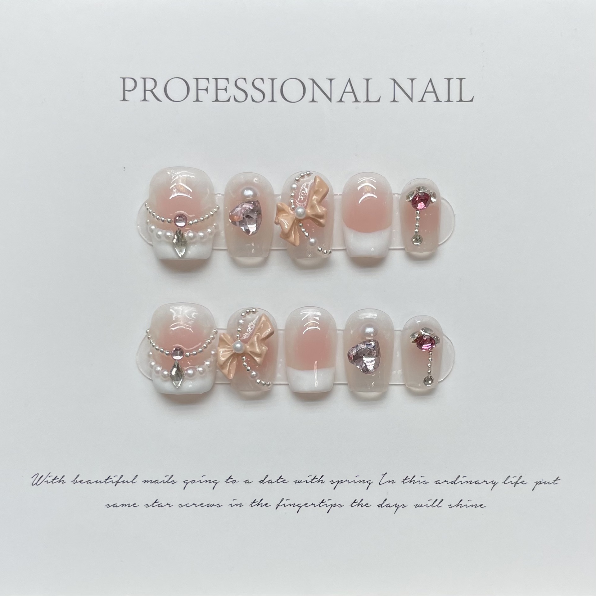 【原创实拍】手工新款穿戴甲纯欲腮红蝴蝶结爆闪显白指甲贴成品美