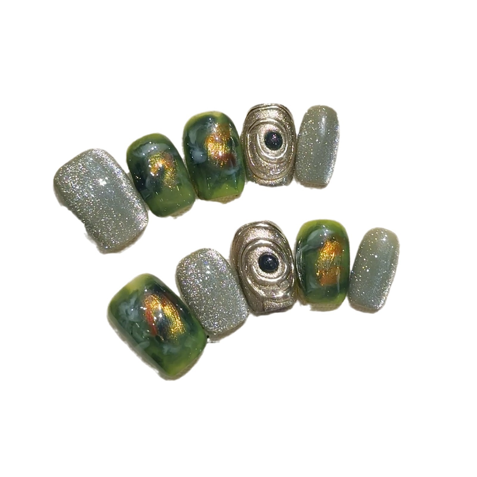 【祖母绿星空】手工穿戴甲美甲高级感猫眼新款小红书同款跳色极光