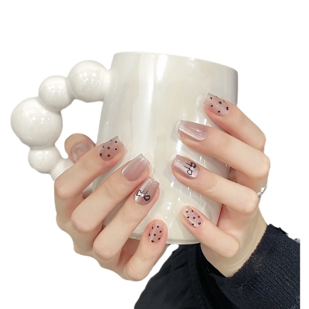 【赫本晚宴】纯手工轻奢设计穿戴甲蝴蝶钻波点长短梯穿戴式美甲