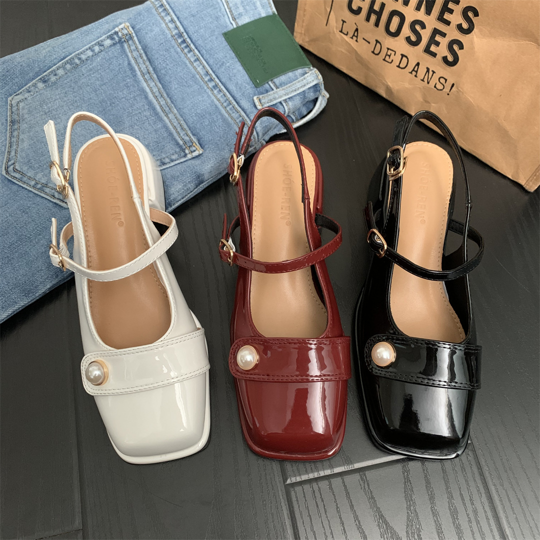 法式粗跟红色玛丽珍包头凉鞋女鞋子春夏季新款漆皮后空单鞋