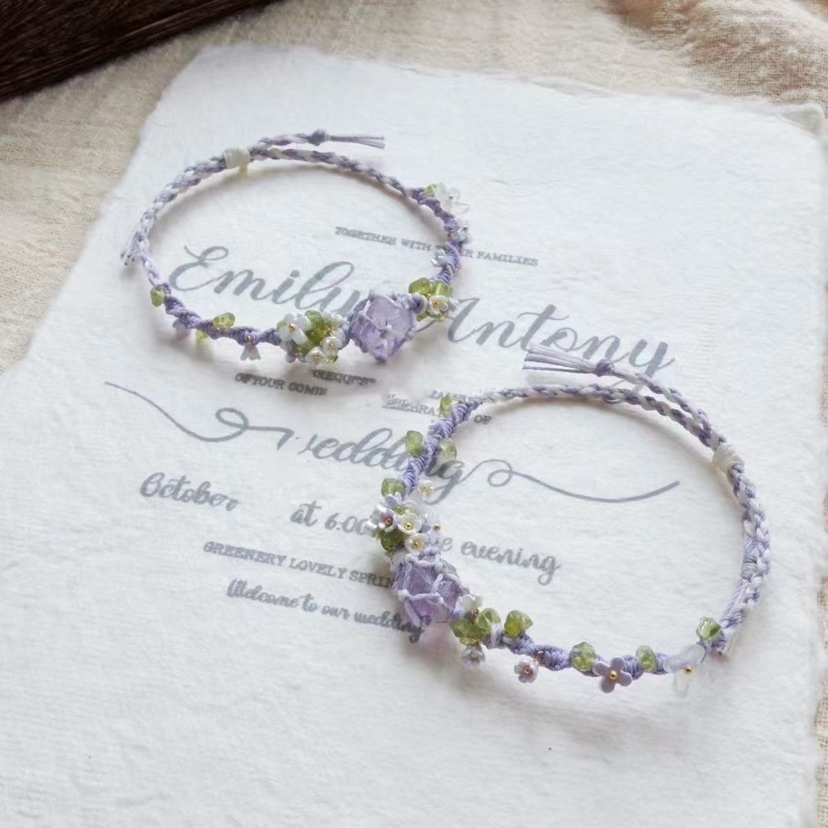 macrame手工编织手链紫萤石合成水晶超仙花朵俏皮甜美森系手绳