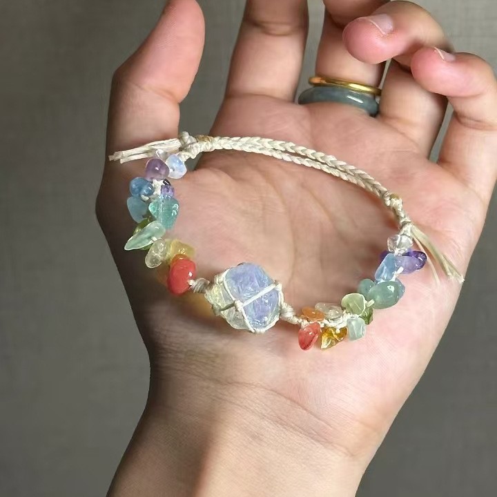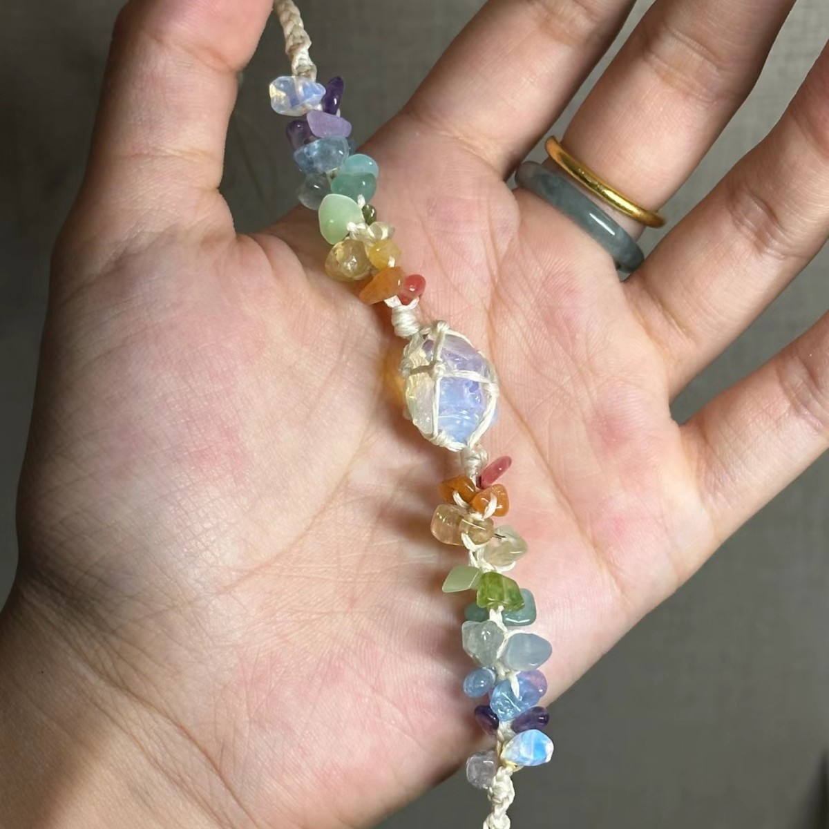 【彩虹】macrame合成水晶蛋白石原创手作可调节手链彩色碎石手绳