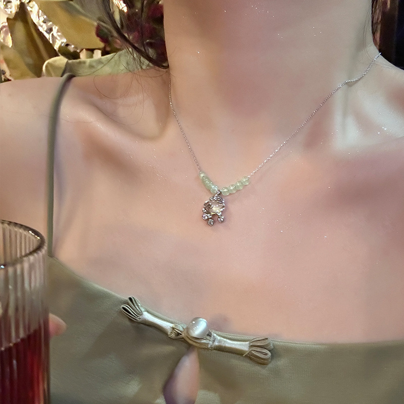 新中式云纹玉石平安锁项链气质高级感显白锁骨链小众设计百搭颈链