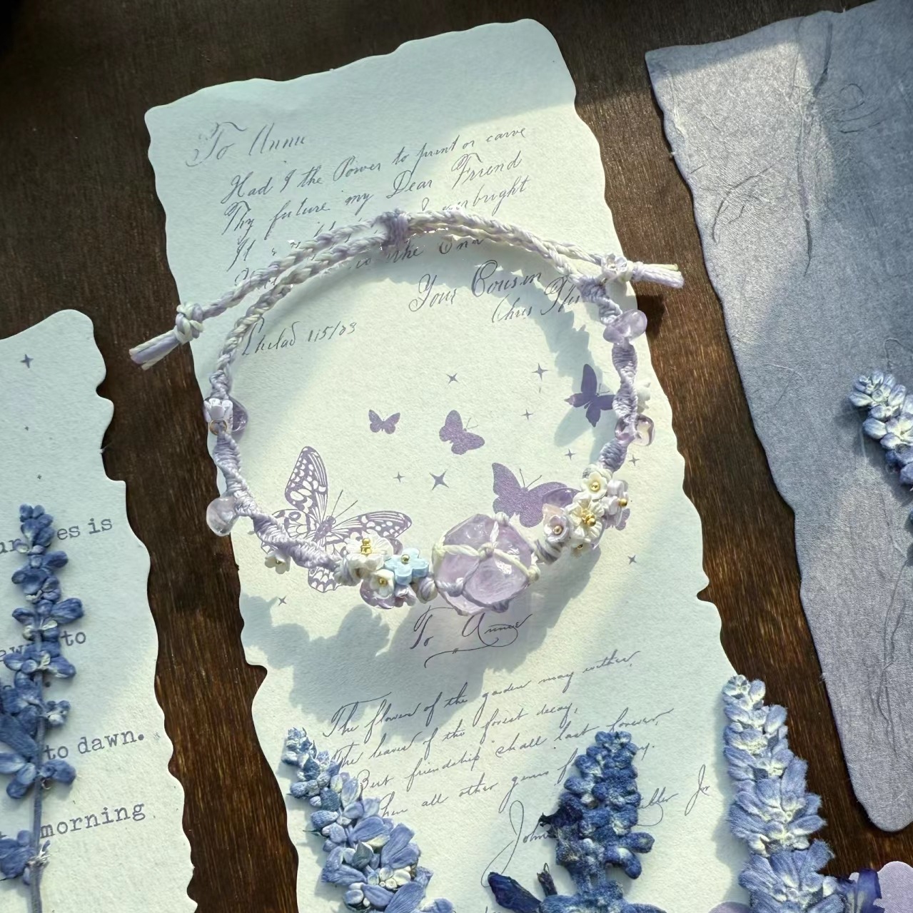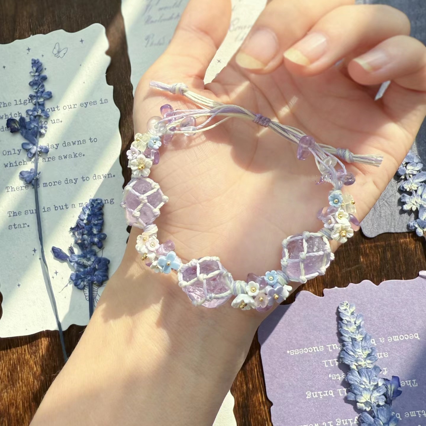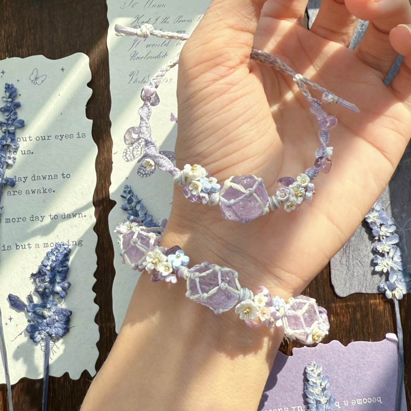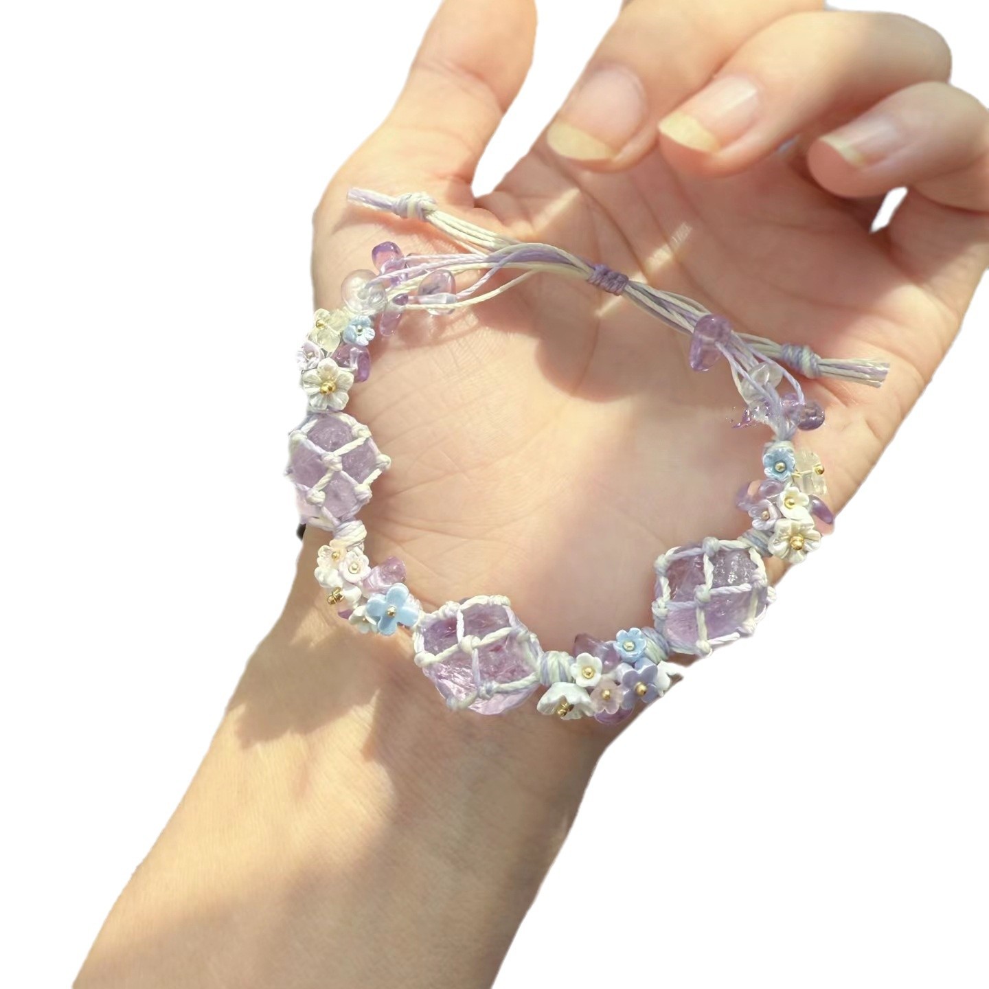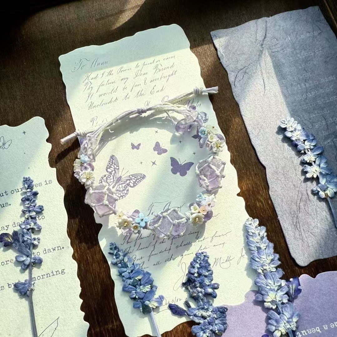 紫色薰衣草】合成紫水晶macrame绳编网兜小众森系手链学生闺蜜礼