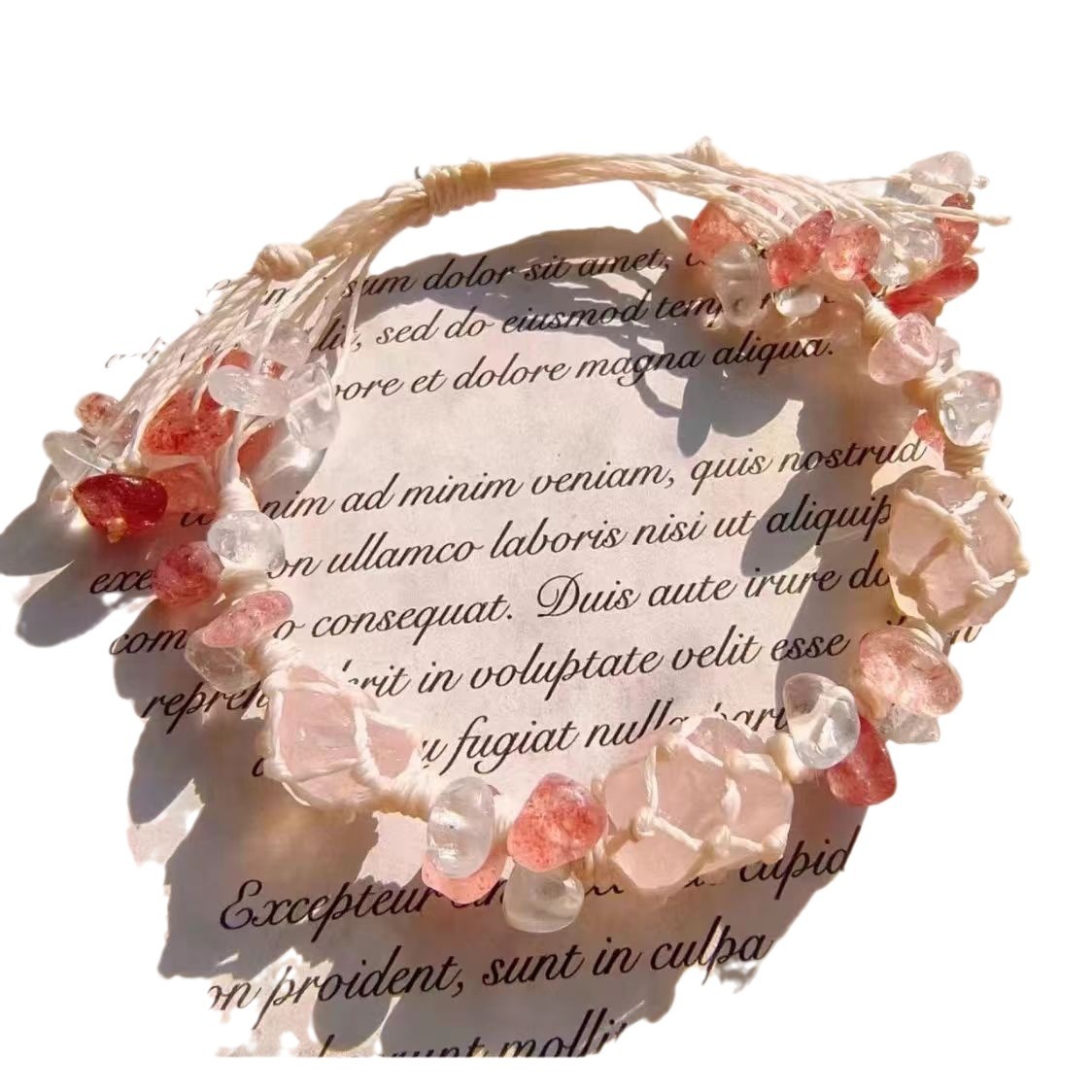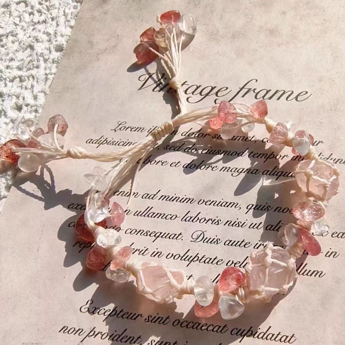 森系手工编织新款合成水晶原石手链网兜爆款手绳手串高颜值公主风