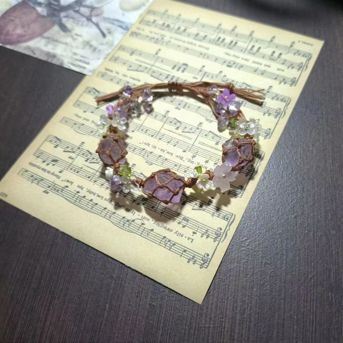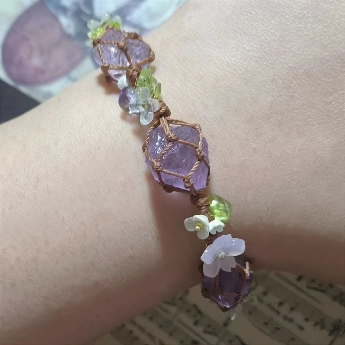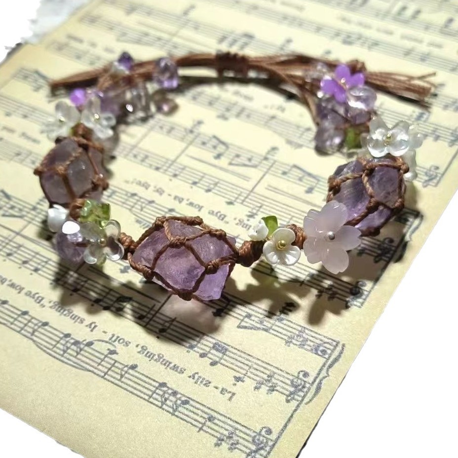 原创设计Macrame手工编织合成紫水晶手链原石礼物手绳