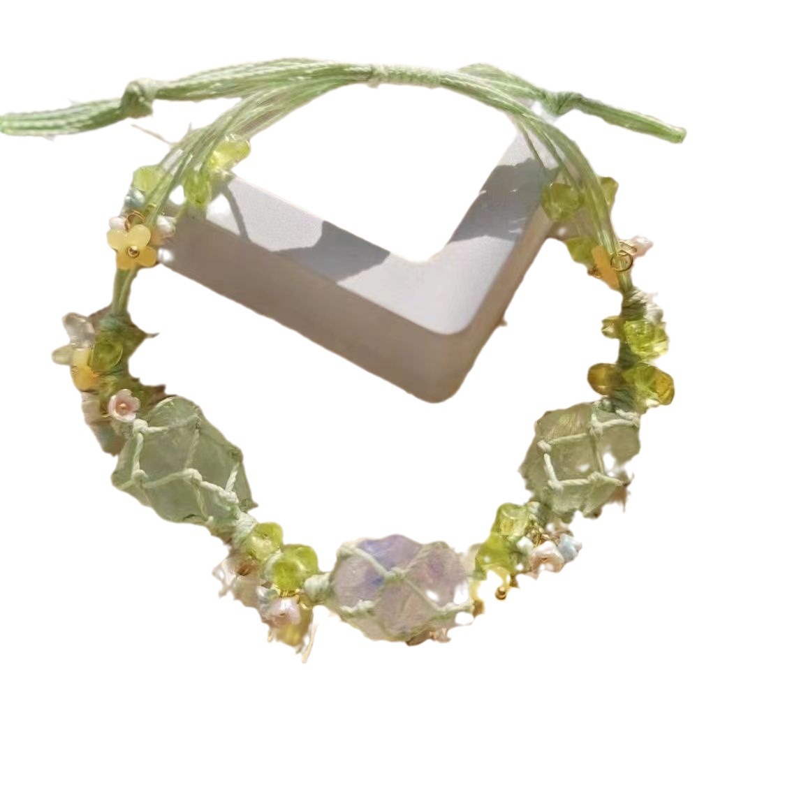 早春花环森系新款合成水晶手链手绳爆款纯手工编织网兜手链