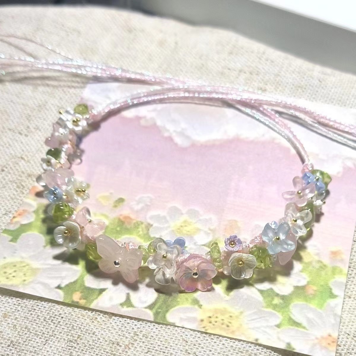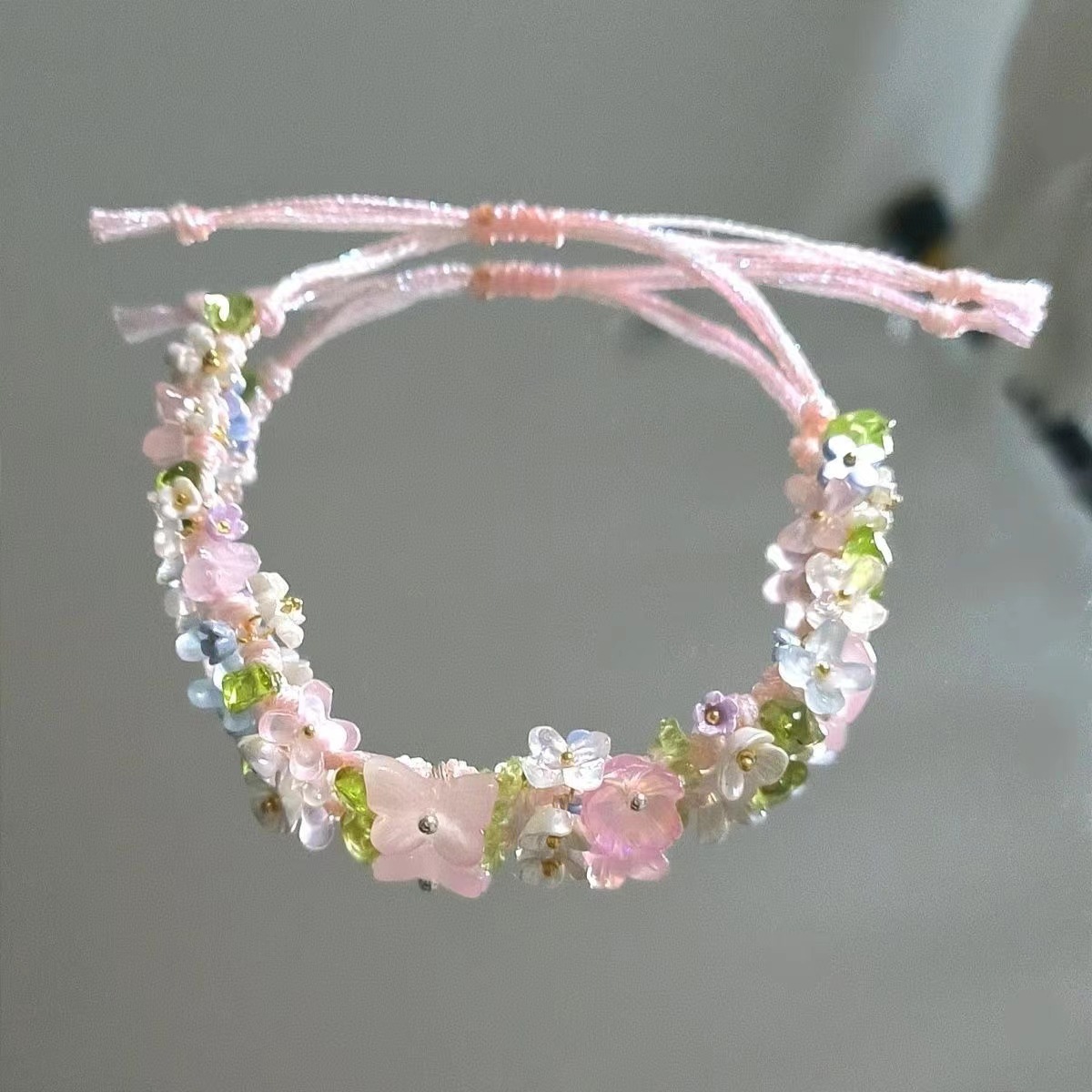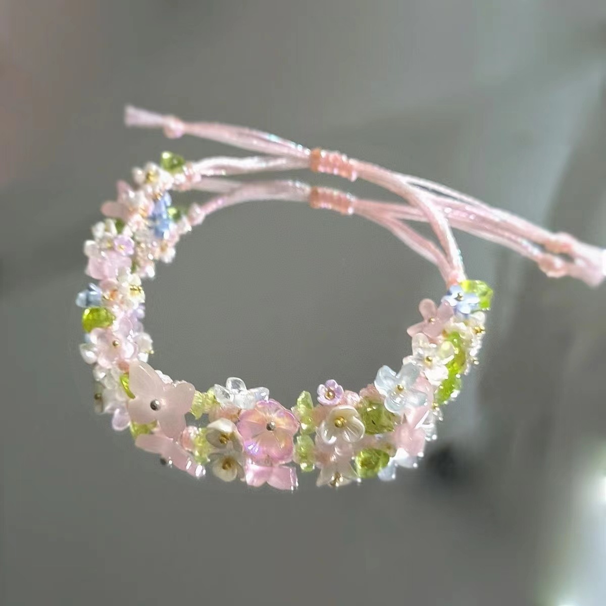 爆款macrame水晶合成原石编织花花手链森系手绳手工小众