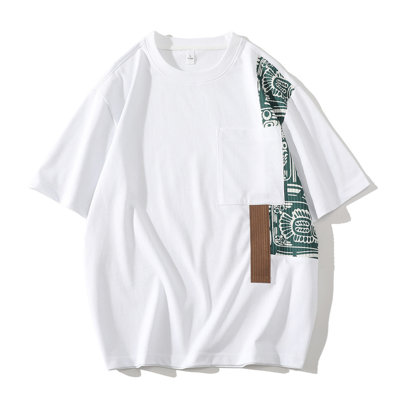 拼接短袖男T恤夏季新款工装风圆领上衣潮牌宽松休闲打底体恤半袖