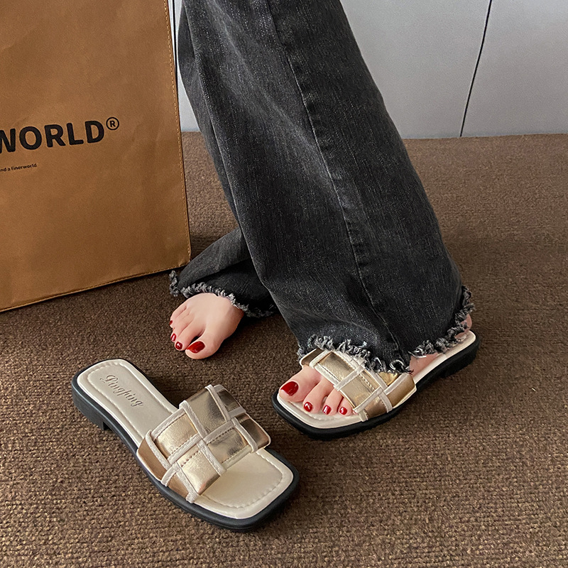 网红拖鞋女夏外穿夏季新款韩版一字平底软底舒适沙滩鞋凉拖女