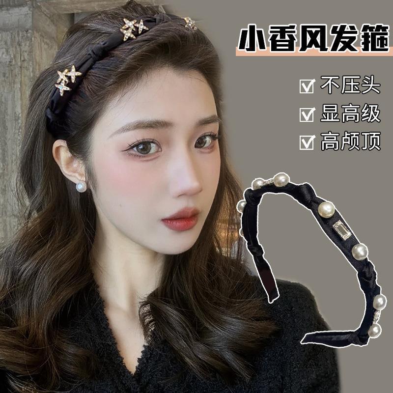 黑色珍珠褶皱发箍女新款夏款高颅顶洗脸压发卡高级感头箍发饰