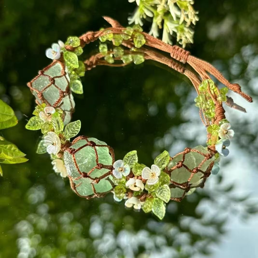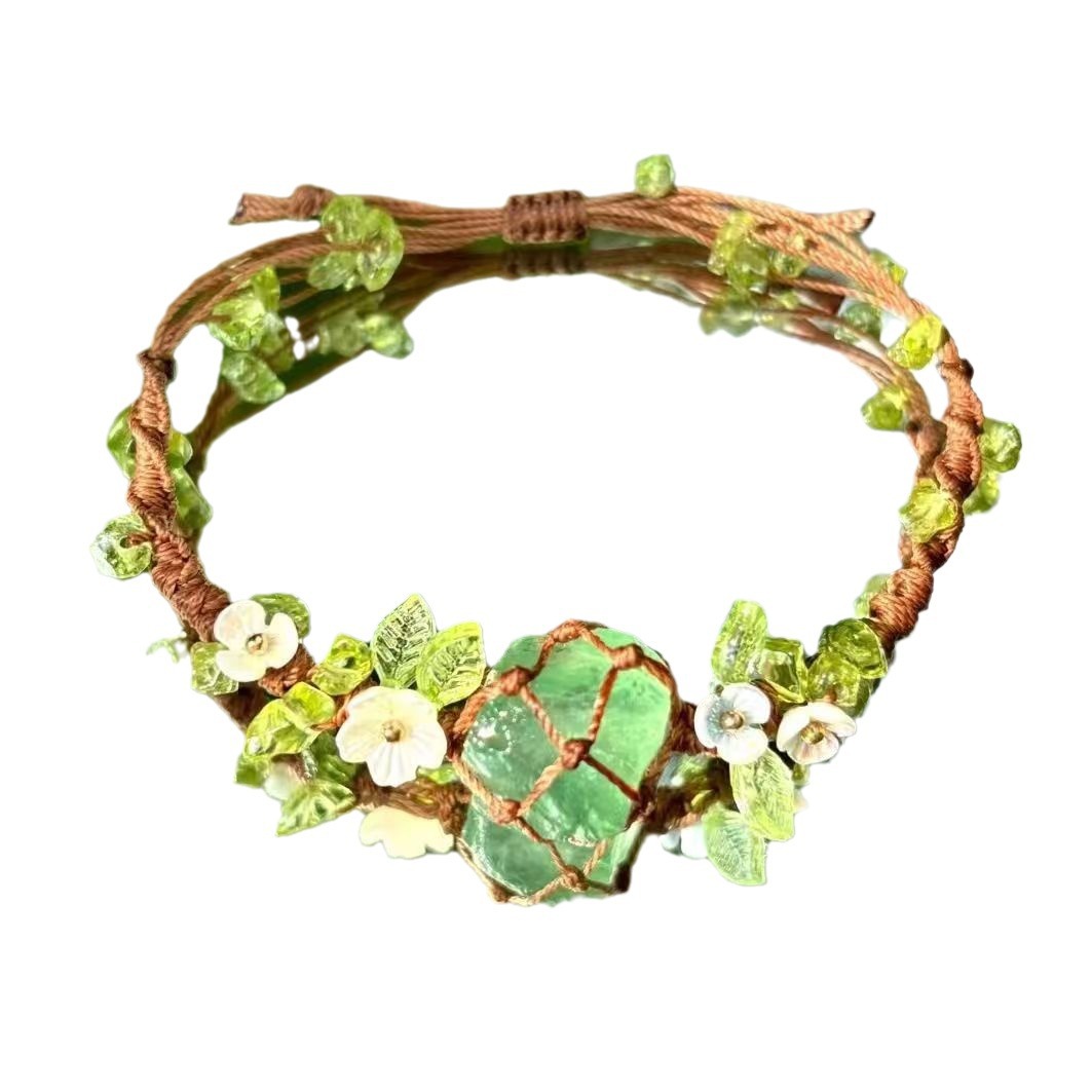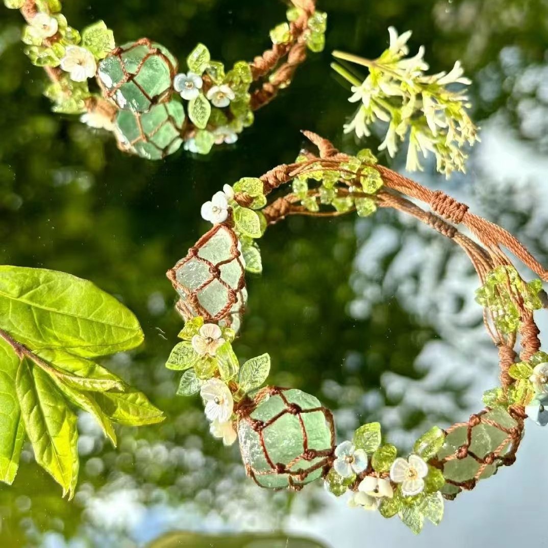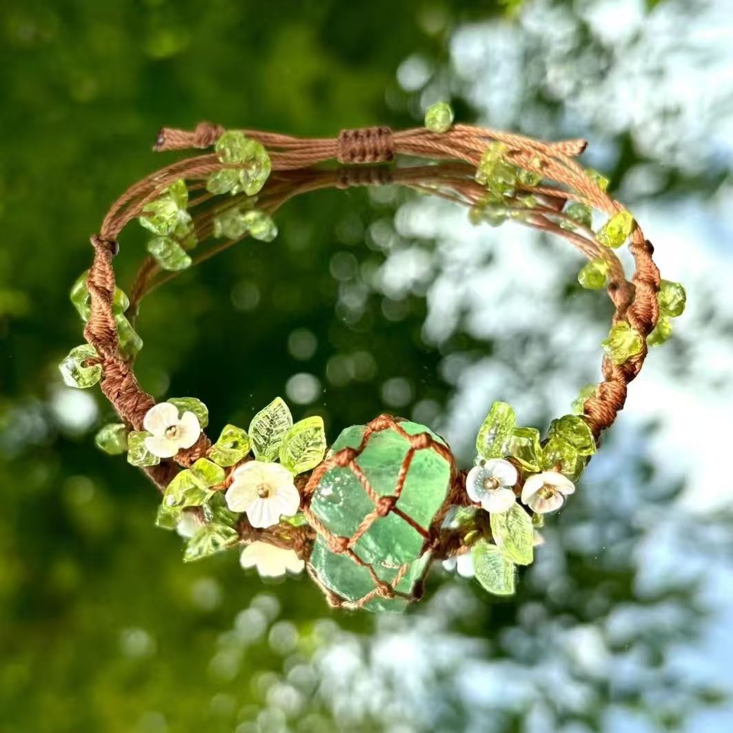 森林气泡水 macrame手工编织原石手链绿水晶萤石网兜百搭新款手绳