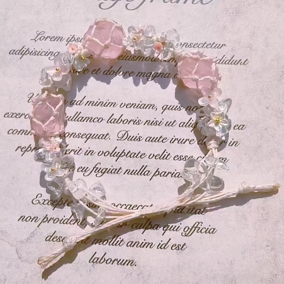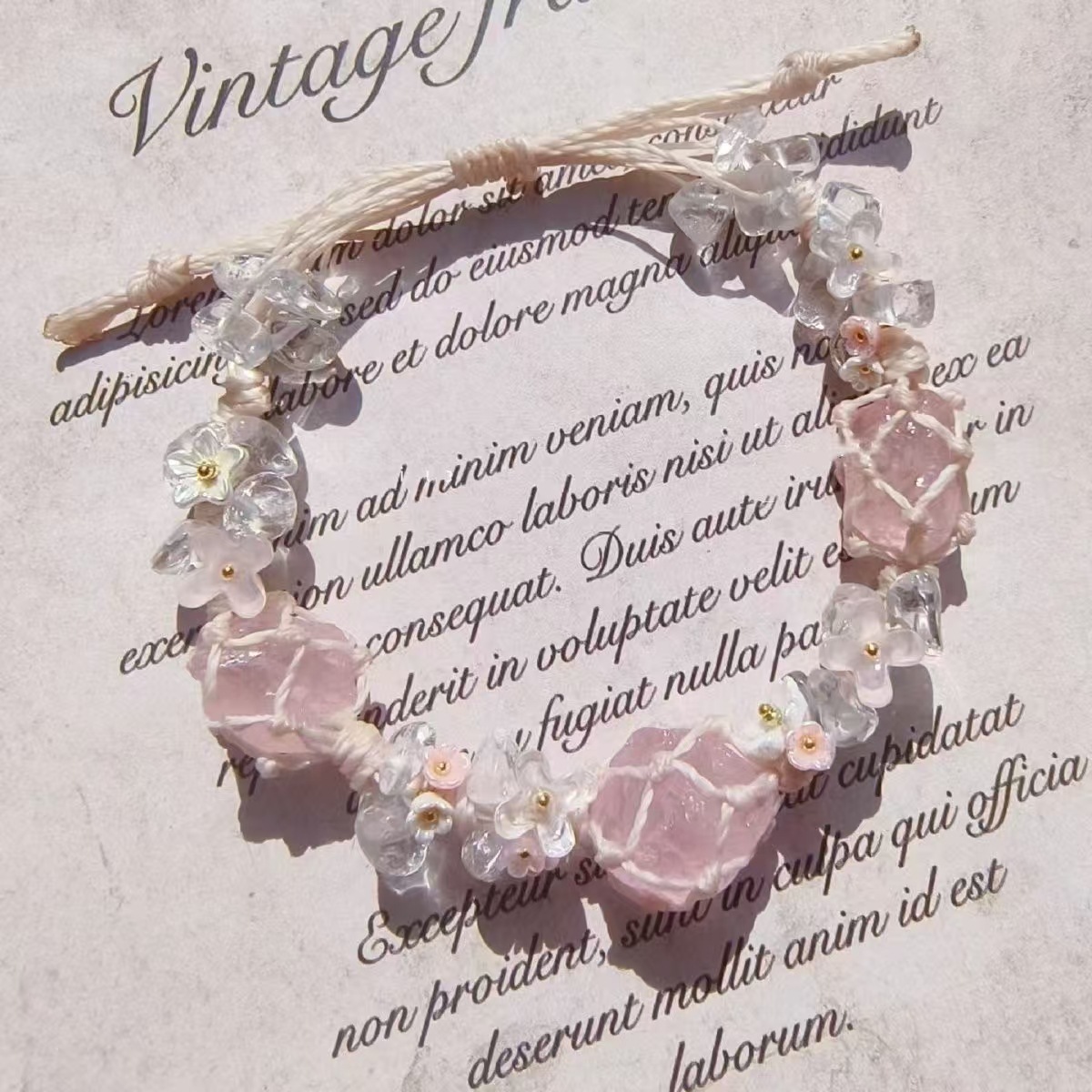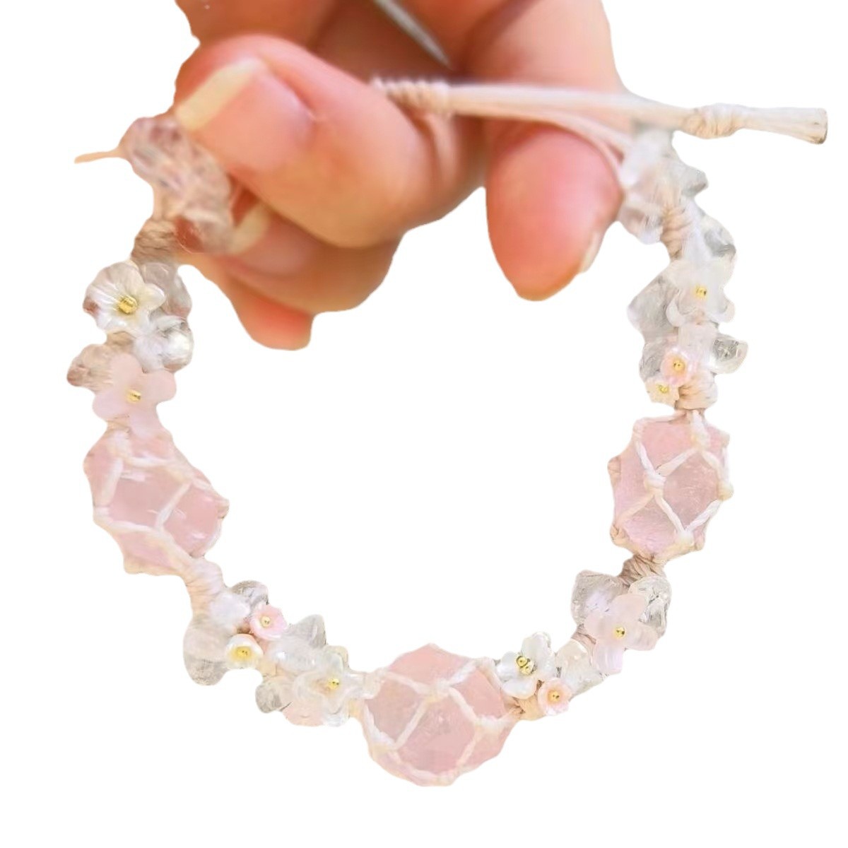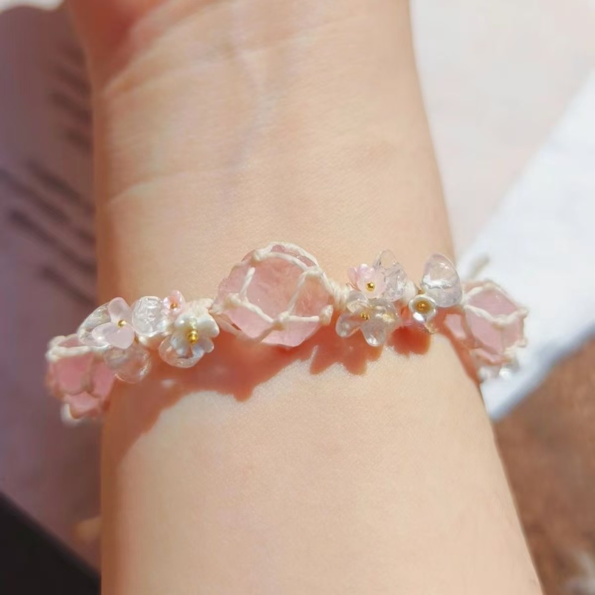 粉水晶手工编织原石手链手绳手环女生小红书节日甜美气质礼物