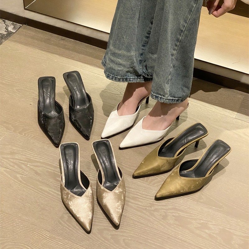法式小众设计感尖头绒面高跟鞋女夏新款细跟配裙子包头凉鞋