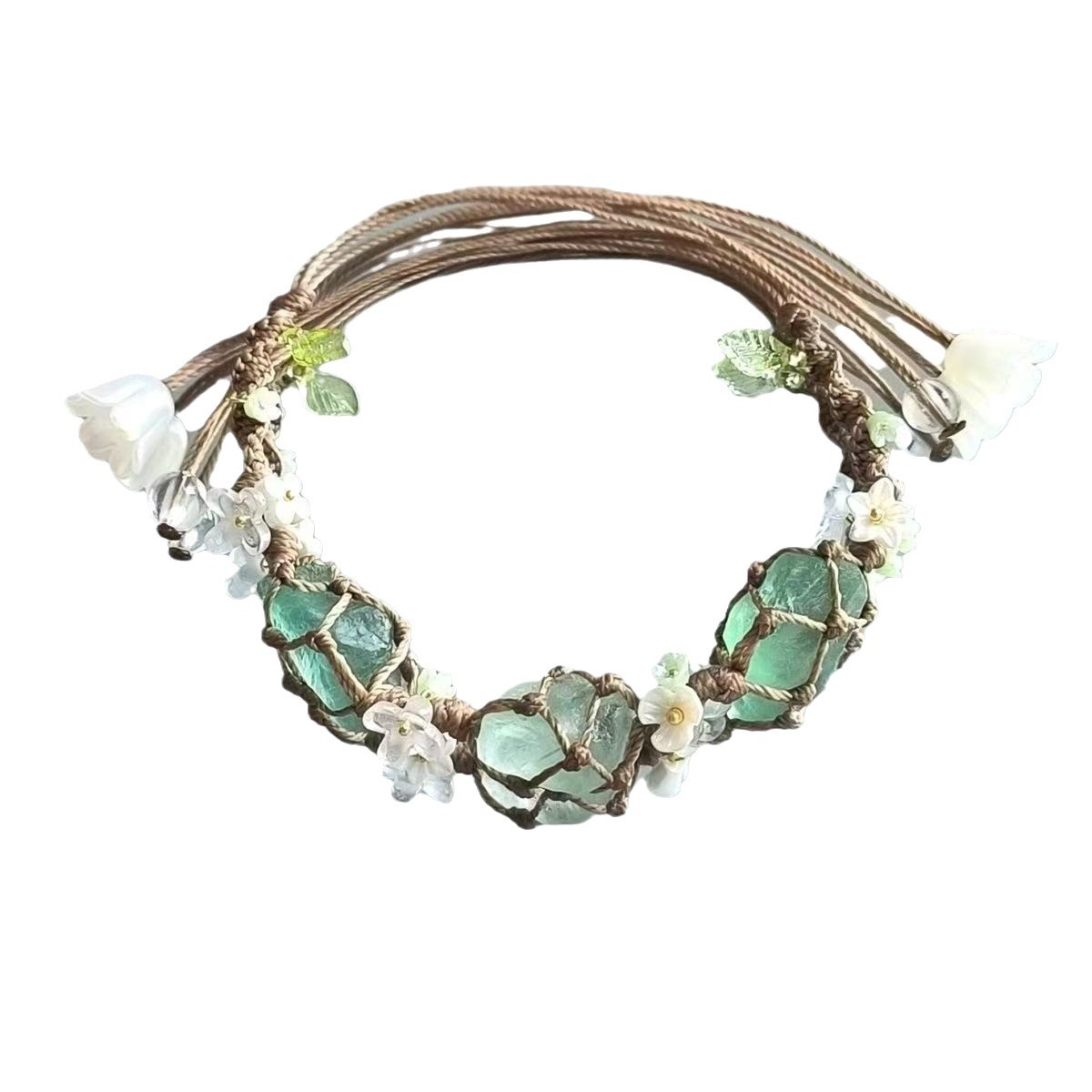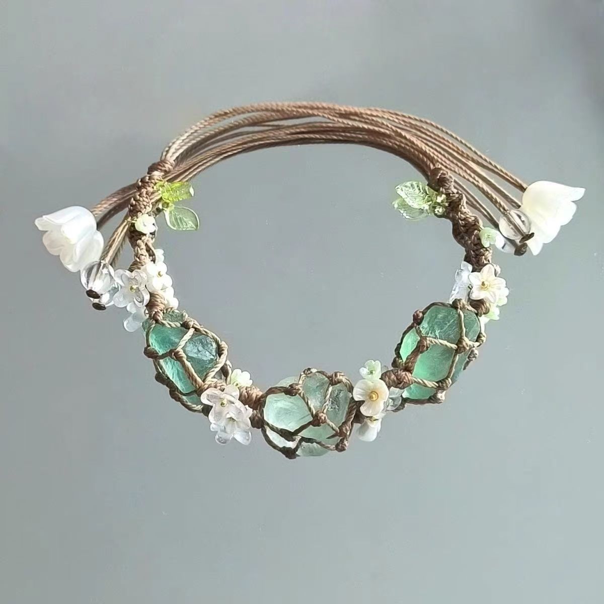 森|原创花环森系新款合成原石手链水晶手绳爆款手工编织网兜礼物