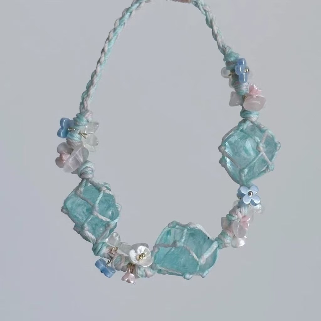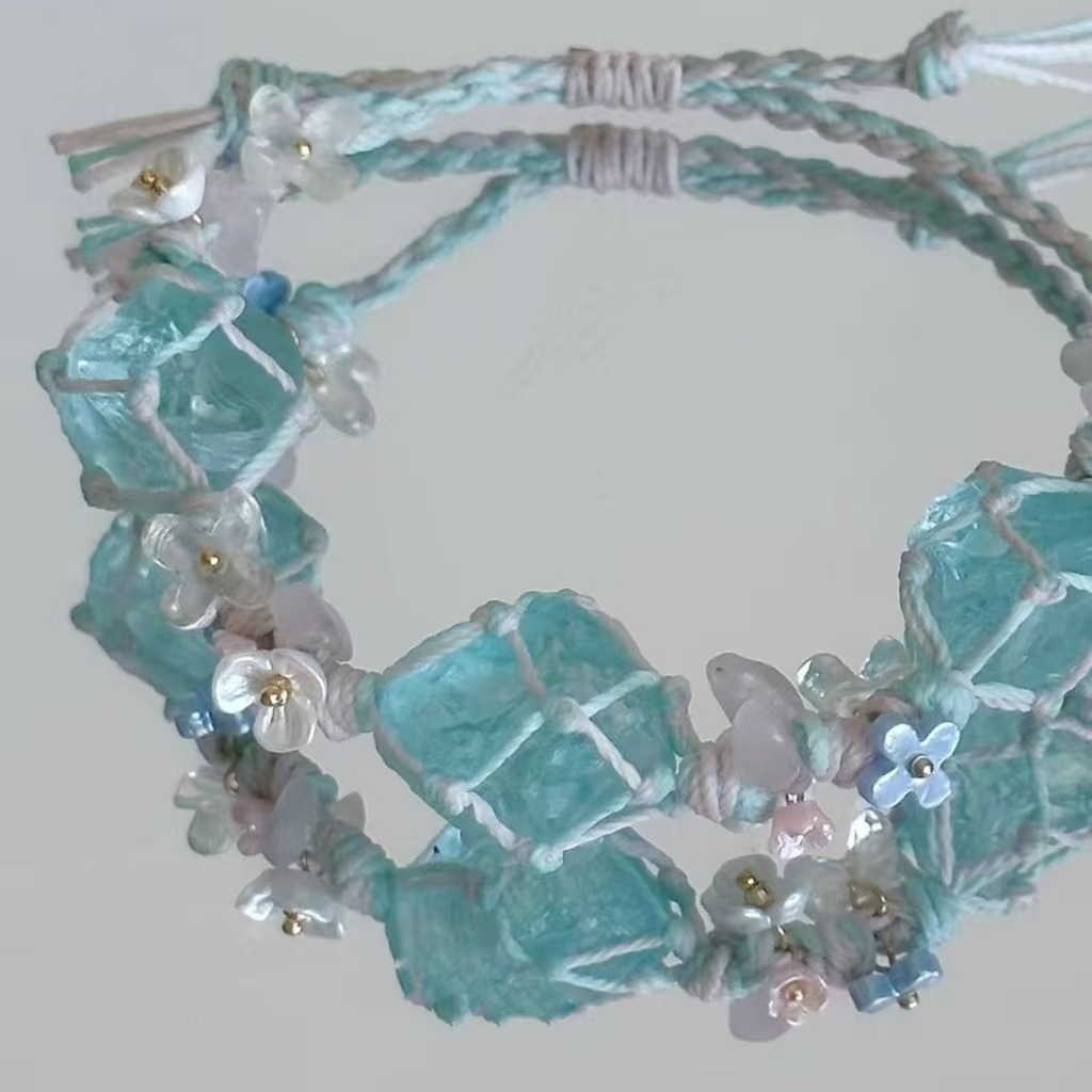 【第八大洋】爱人的眼睛合成蓝水晶手工编绳手链小众原创闺蜜礼物
