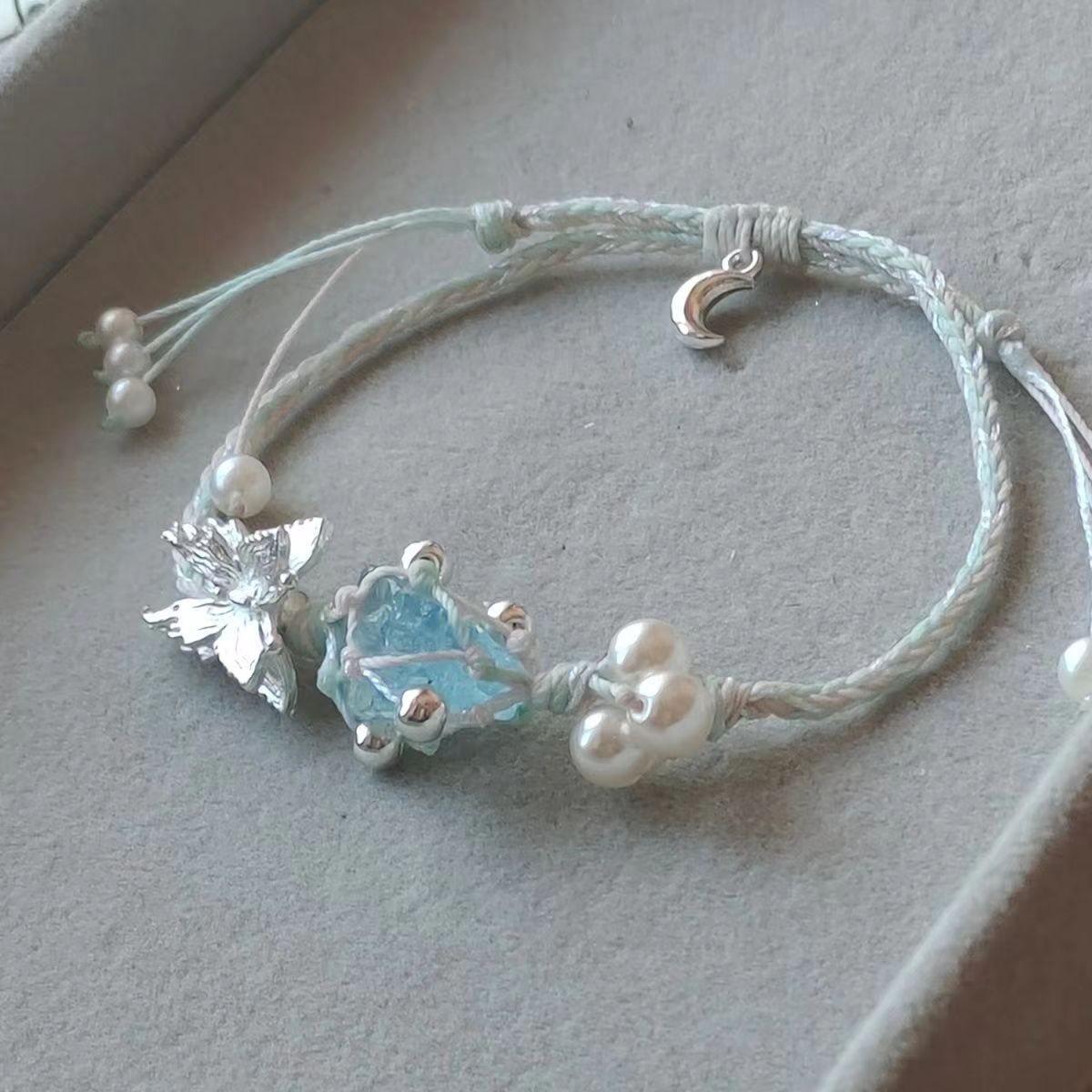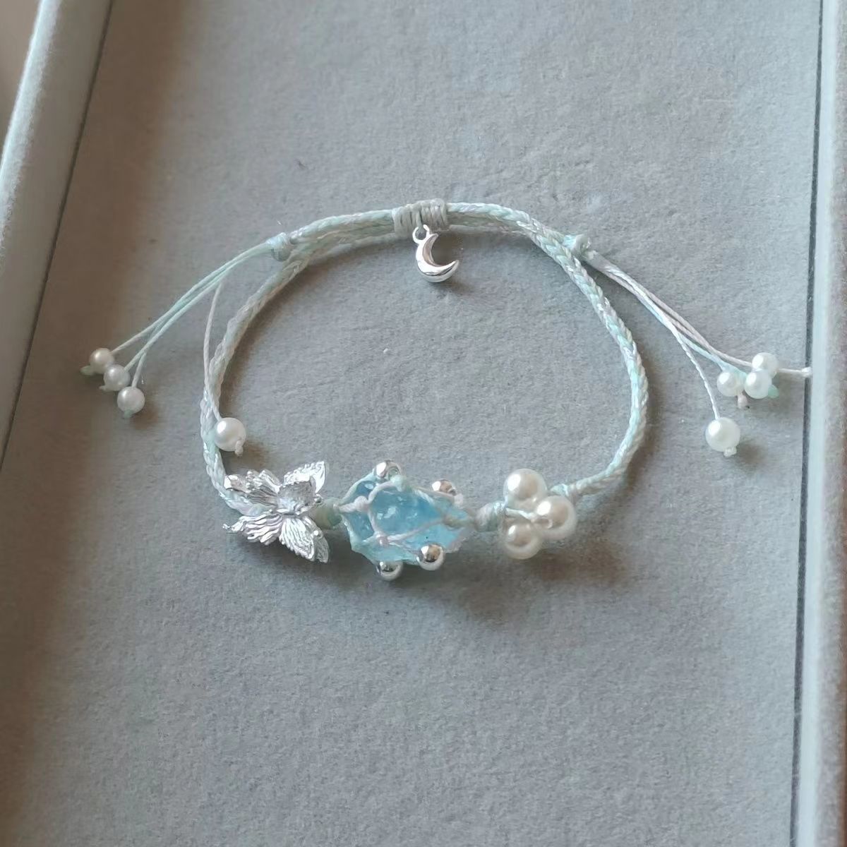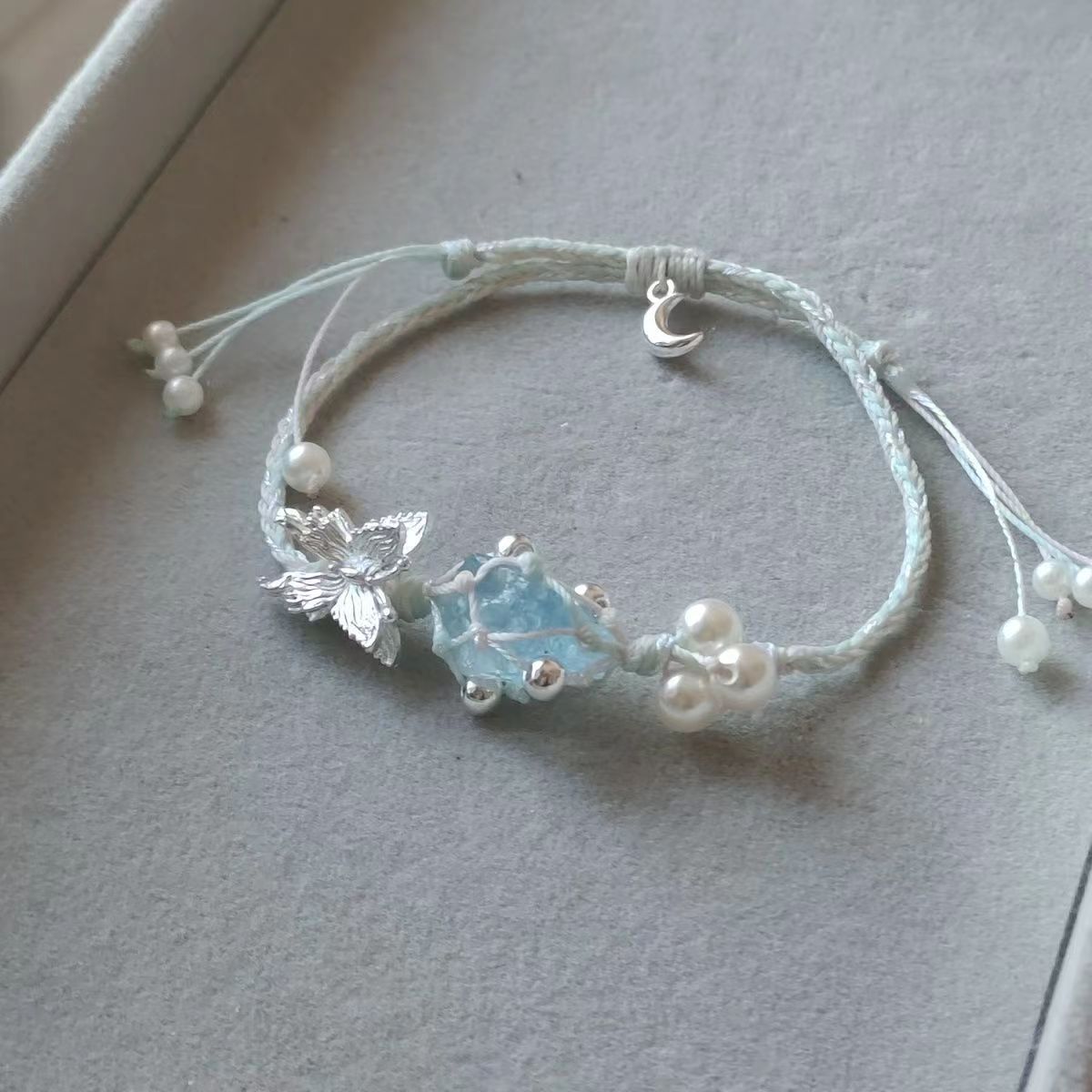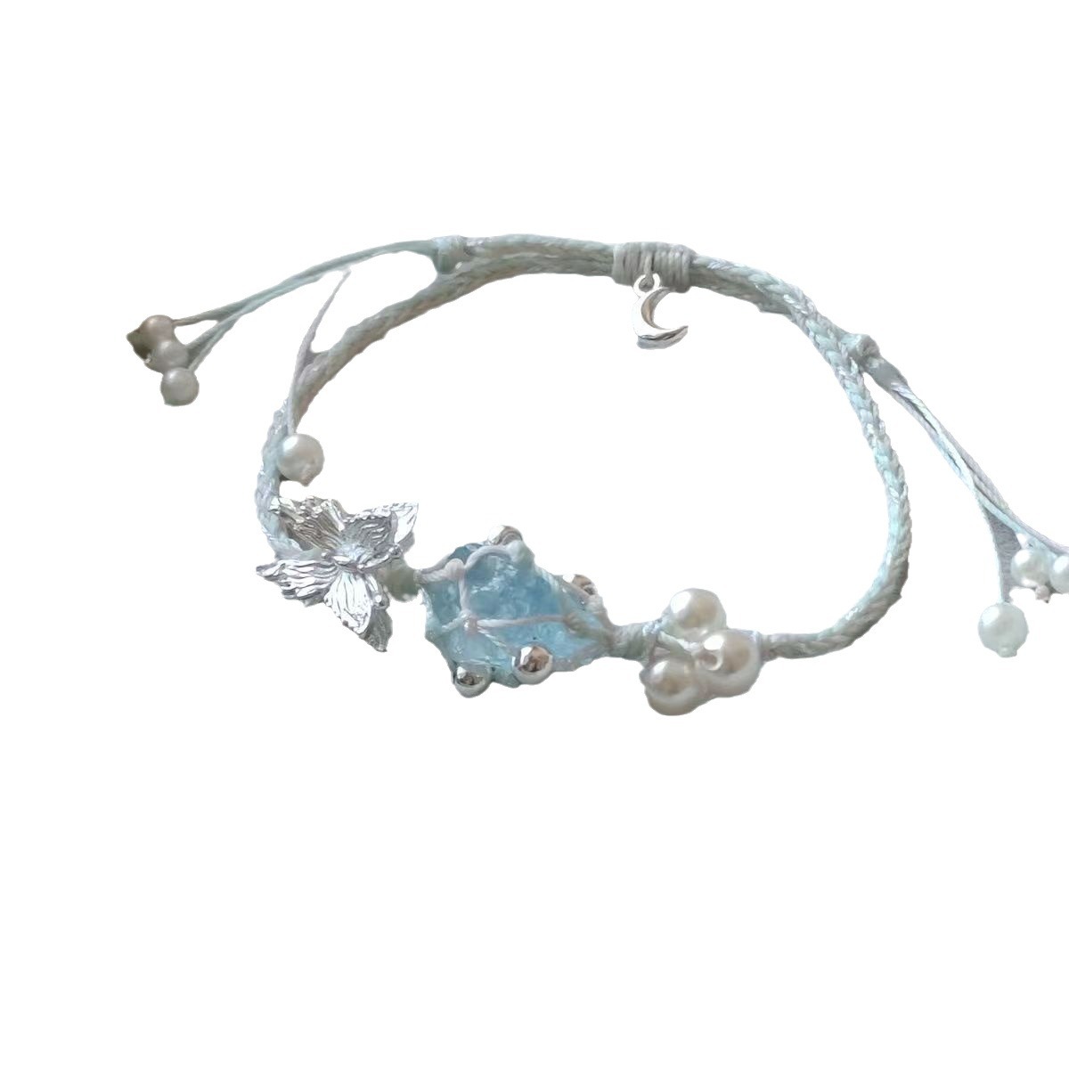 【闪光的海】合成海蓝宝原石手绳蝴蝶原创编织简约甜美手链情侣款