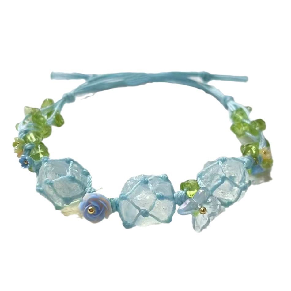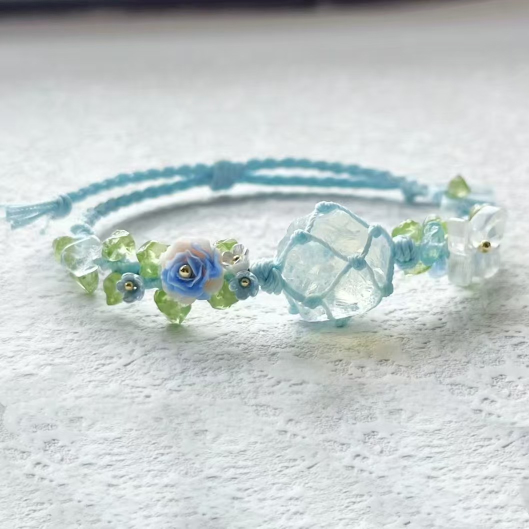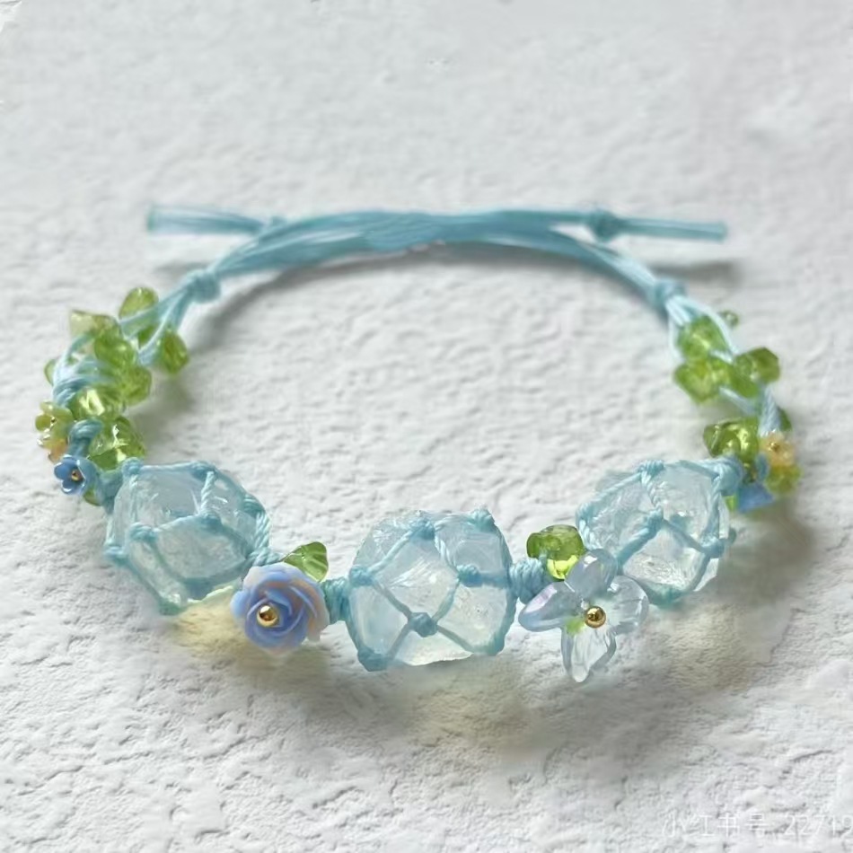 【碎冰蓝】macrame纯手工编织小清新浅蓝色手绳合成白水晶手链女