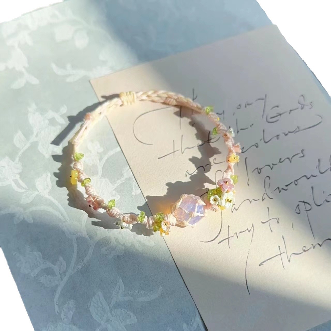 原创手工编织macrame合成蛋白石原石花朵手链女款网兜手绳礼物