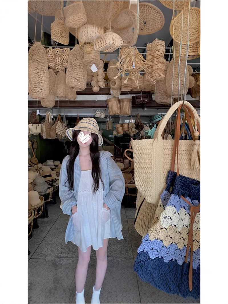 蓝色条纹衬衫女2025春夏韩系休闲宽松气质防晒衬衣高级感长袖上衣
