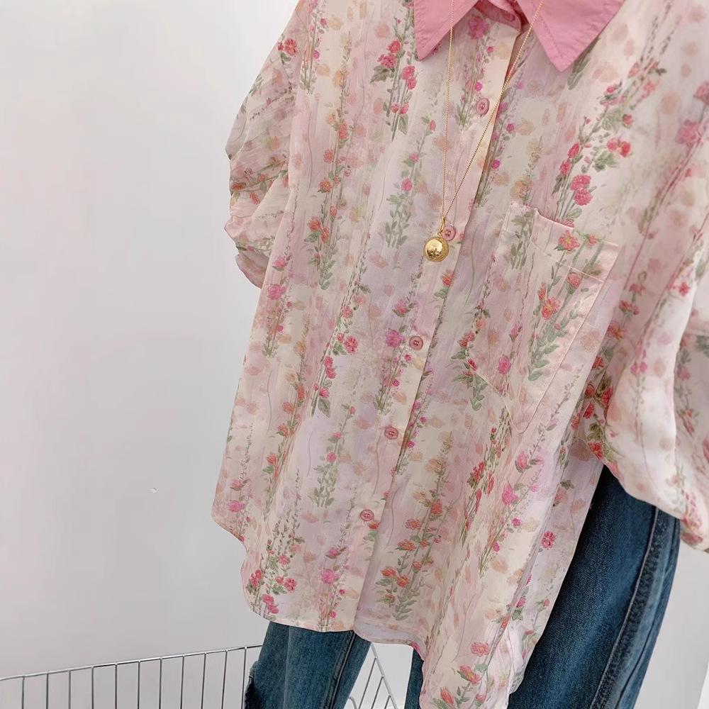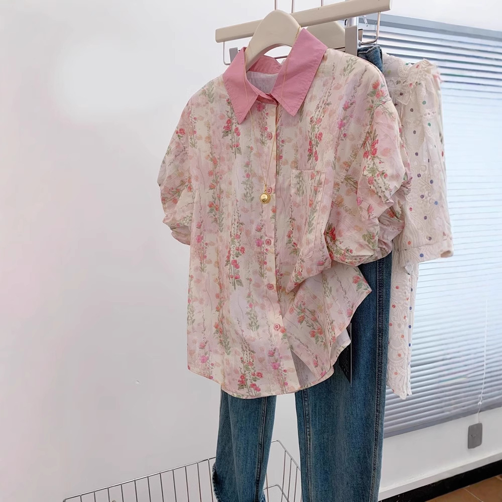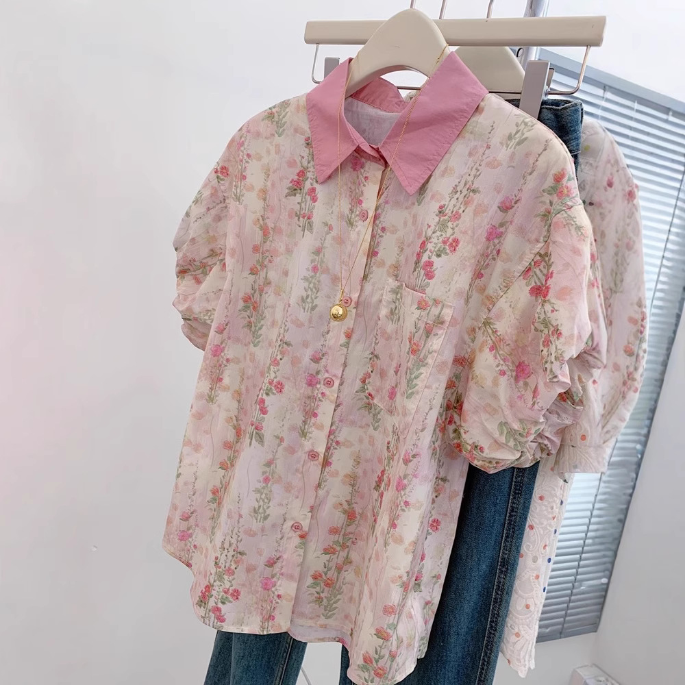 法式绝美撞色碎花衬衫女小众设计感宽松显瘦遮肉上衣减龄气质小衫