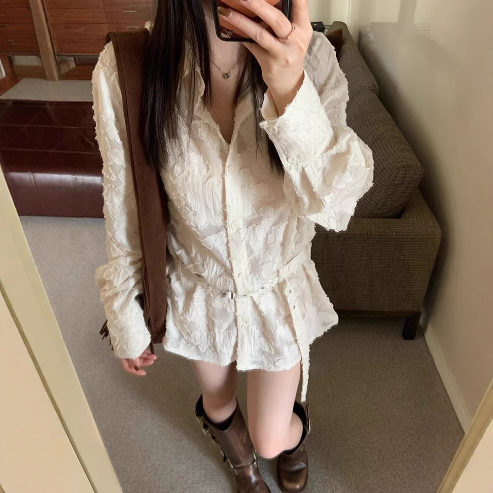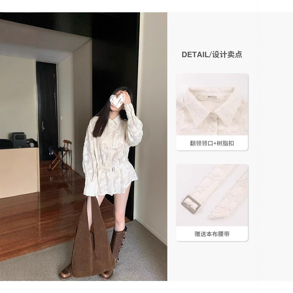 蕾丝衬衫裙女春季新款法式复古松弛百搭休闲长袖上衣
