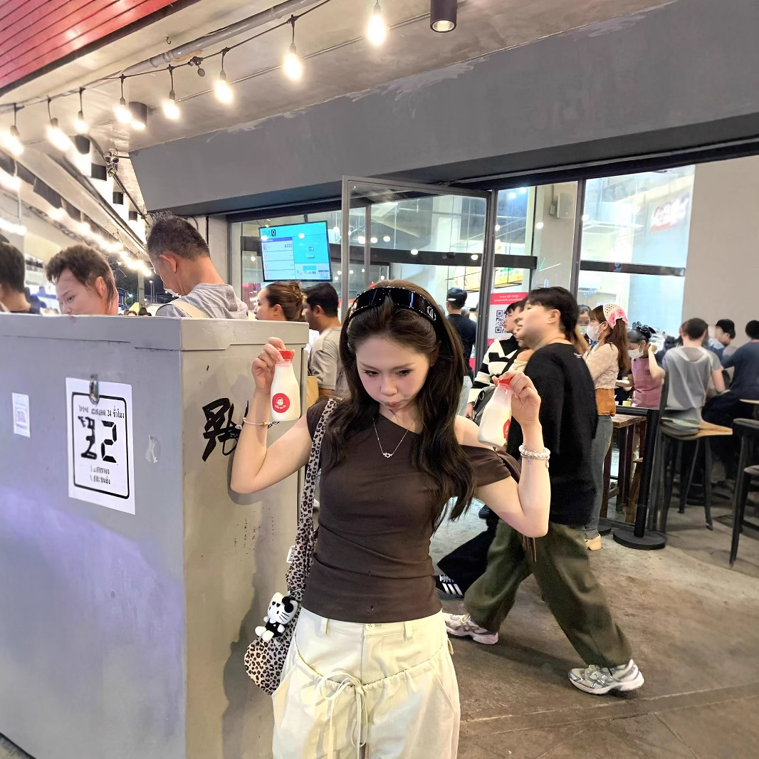 春夏韩版修身气质斜肩百搭显瘦短袖T恤上衣女