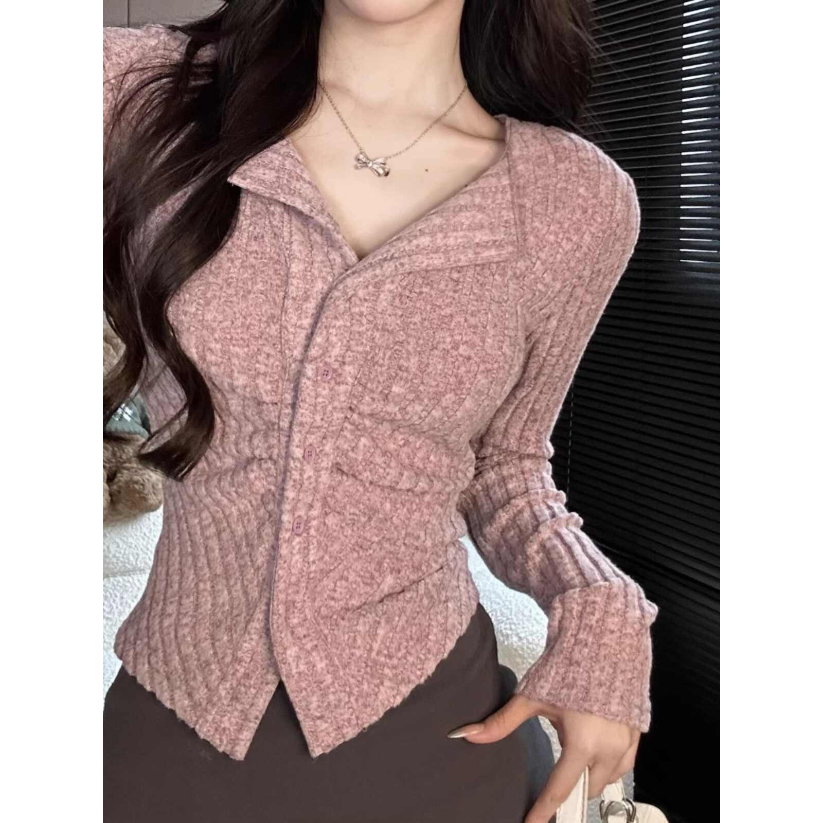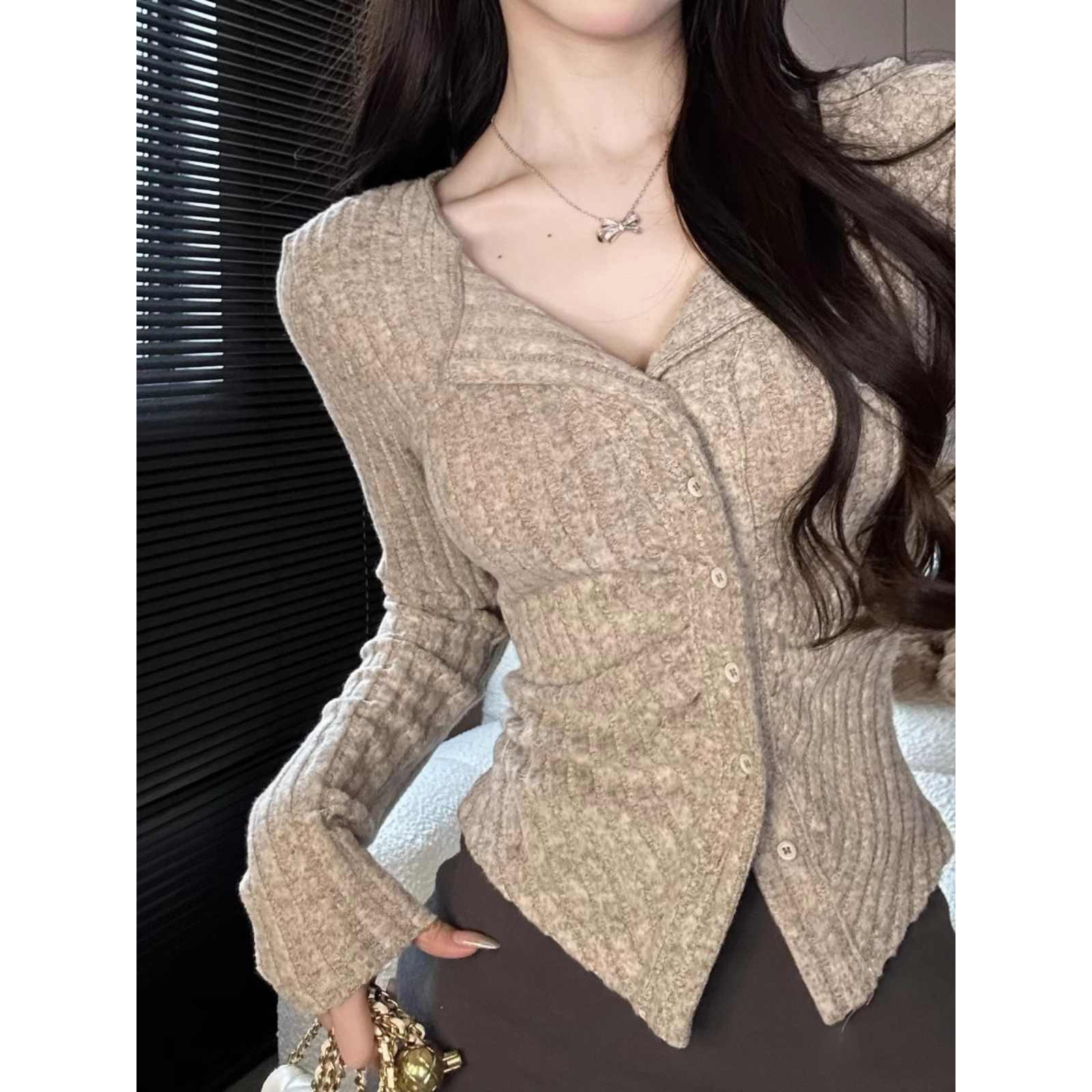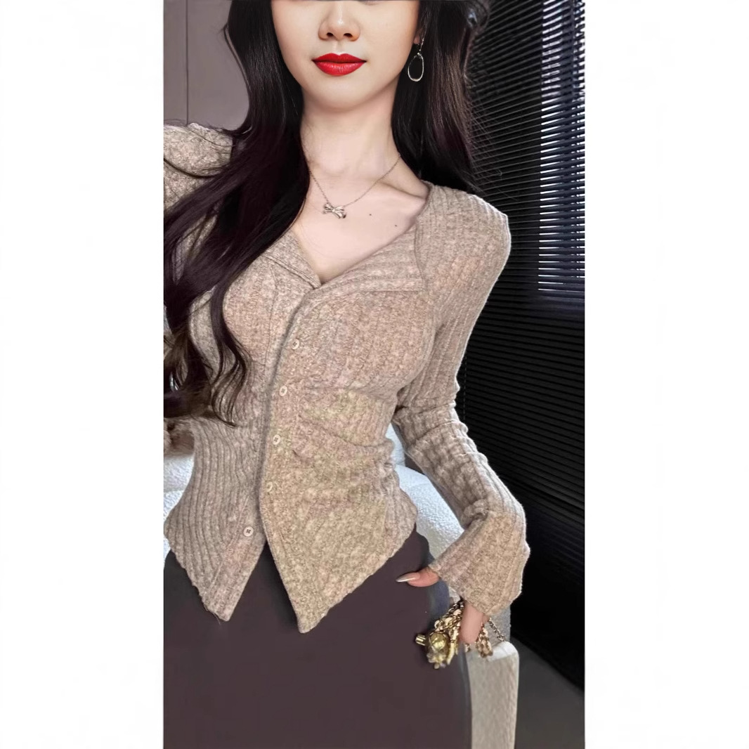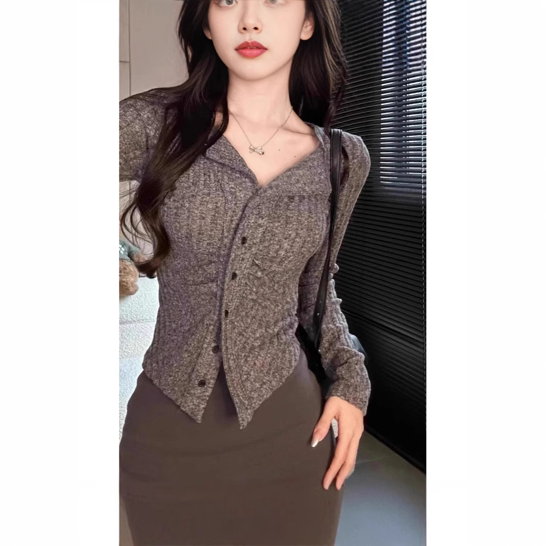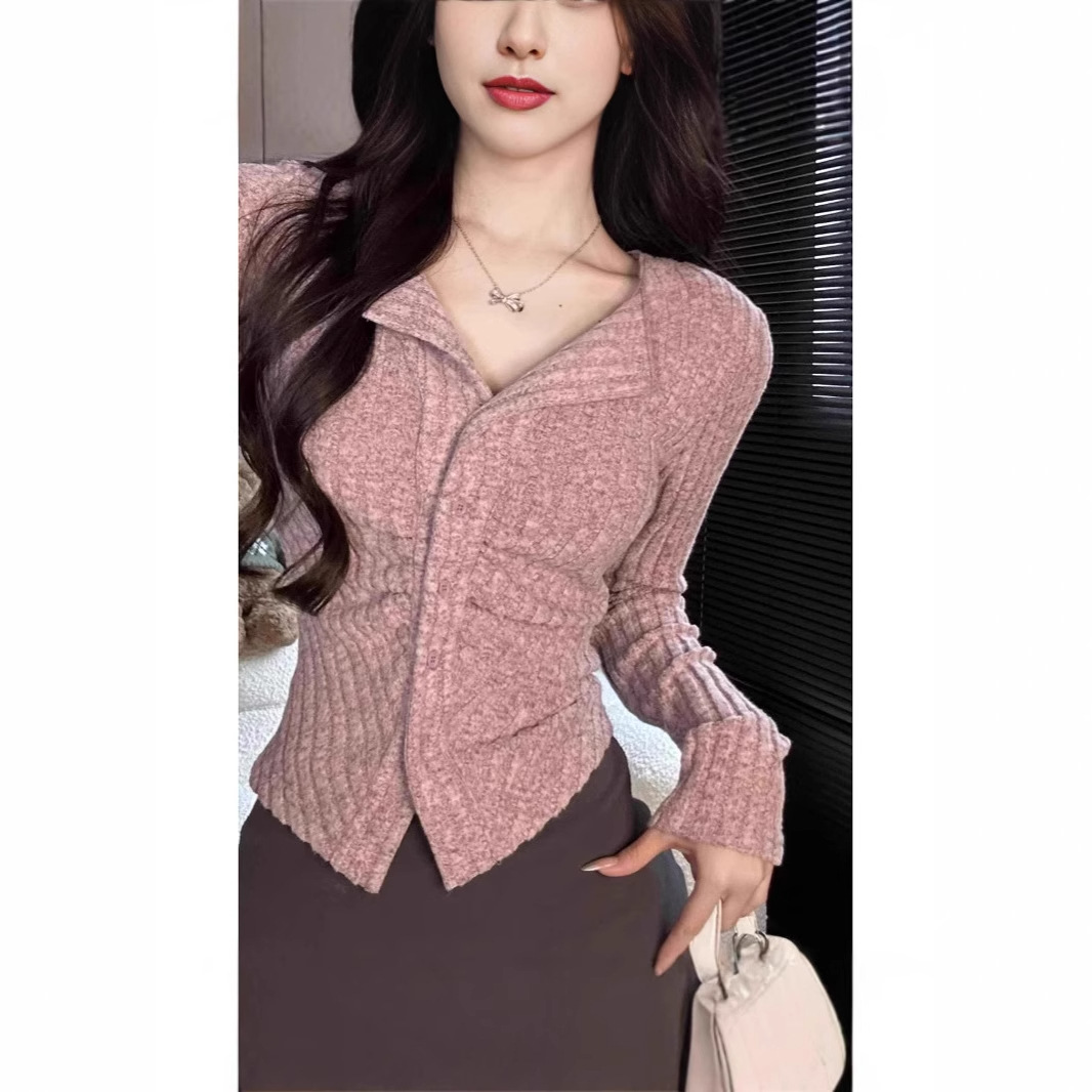 辣妹新款开衫长袖针织T恤打底衫女秋冬穿搭新款内搭修身上衣