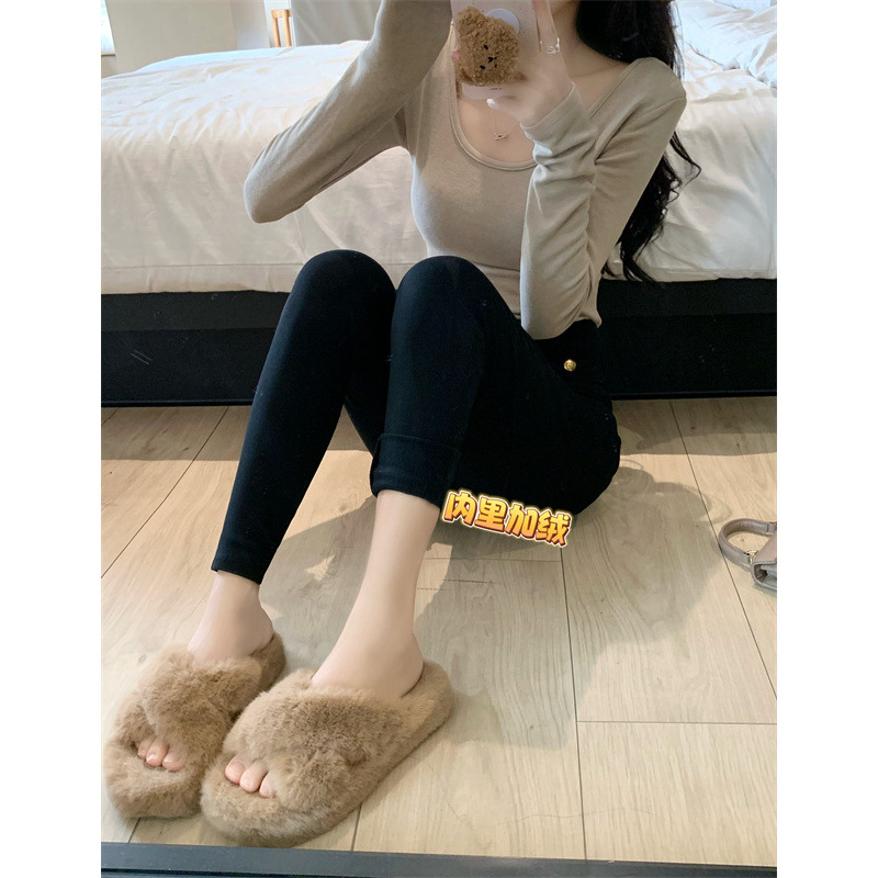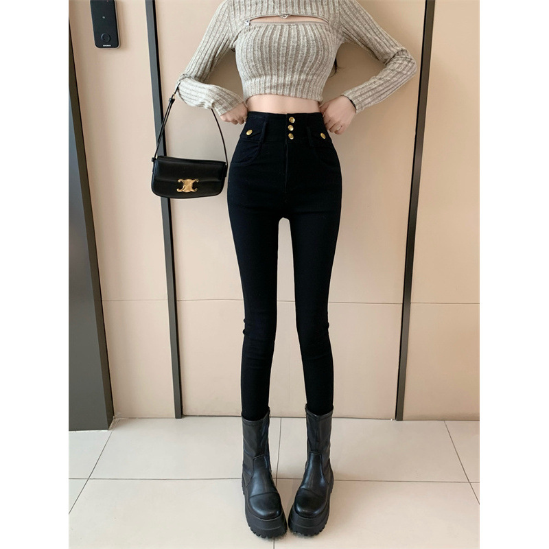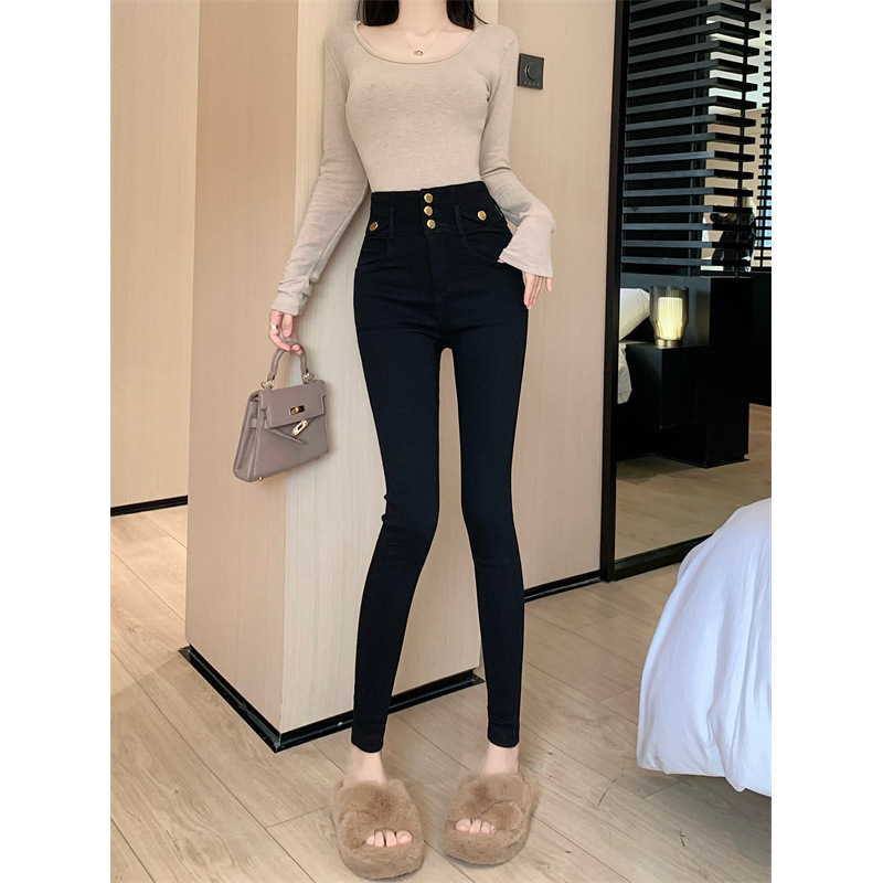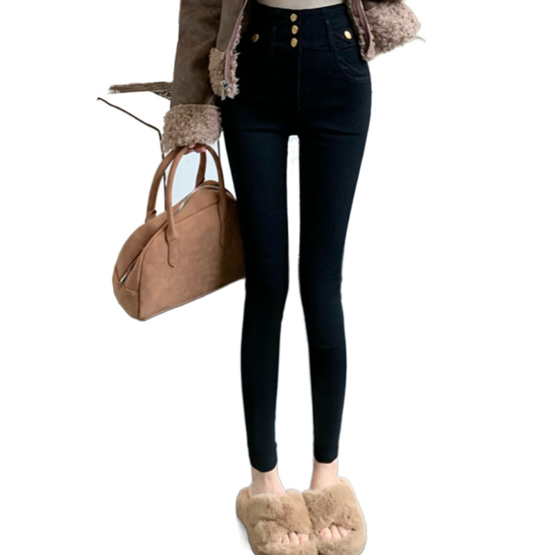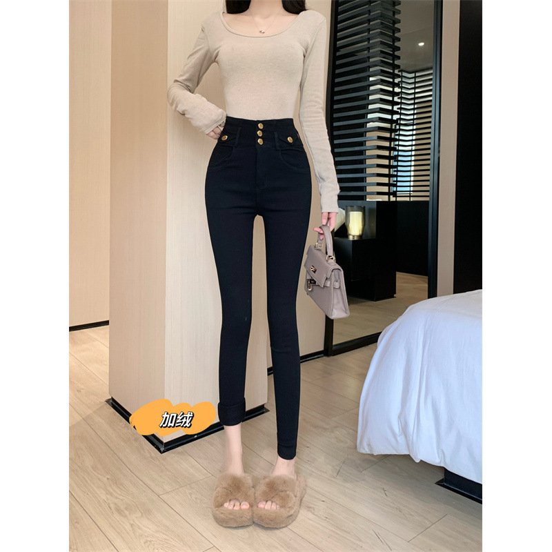 新款秋冬加绒加厚高腰弹力紧身显瘦