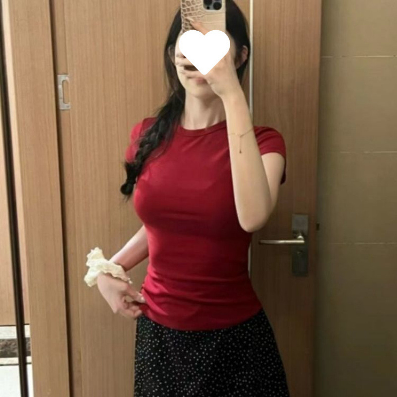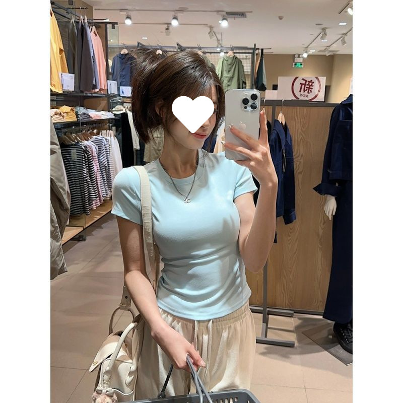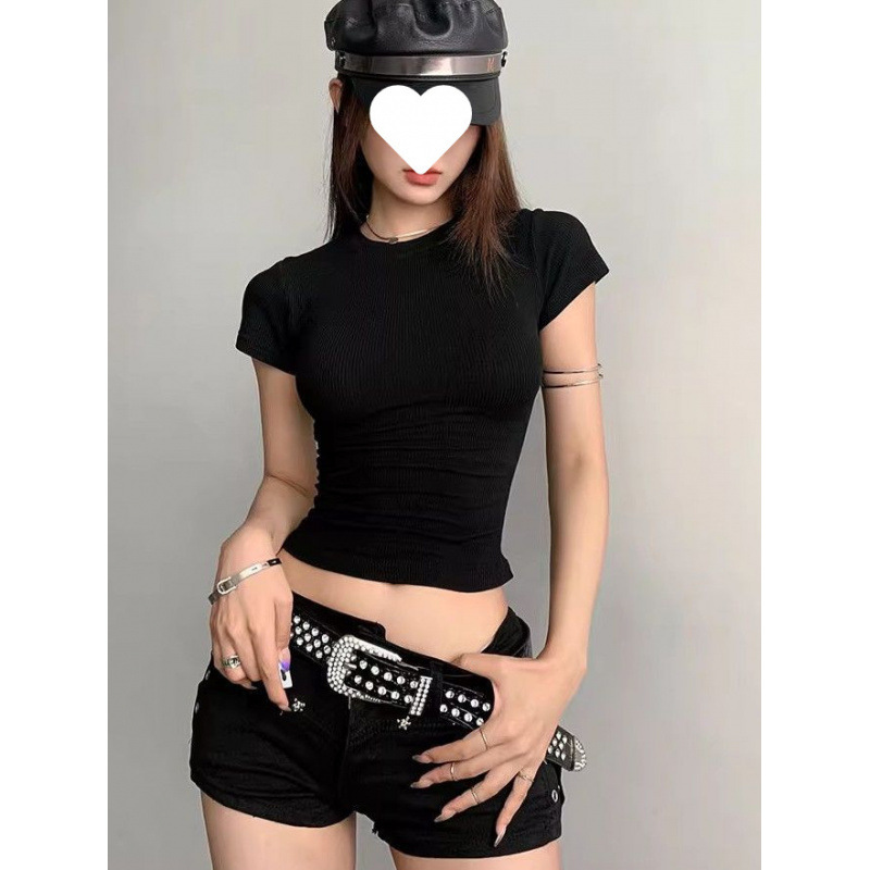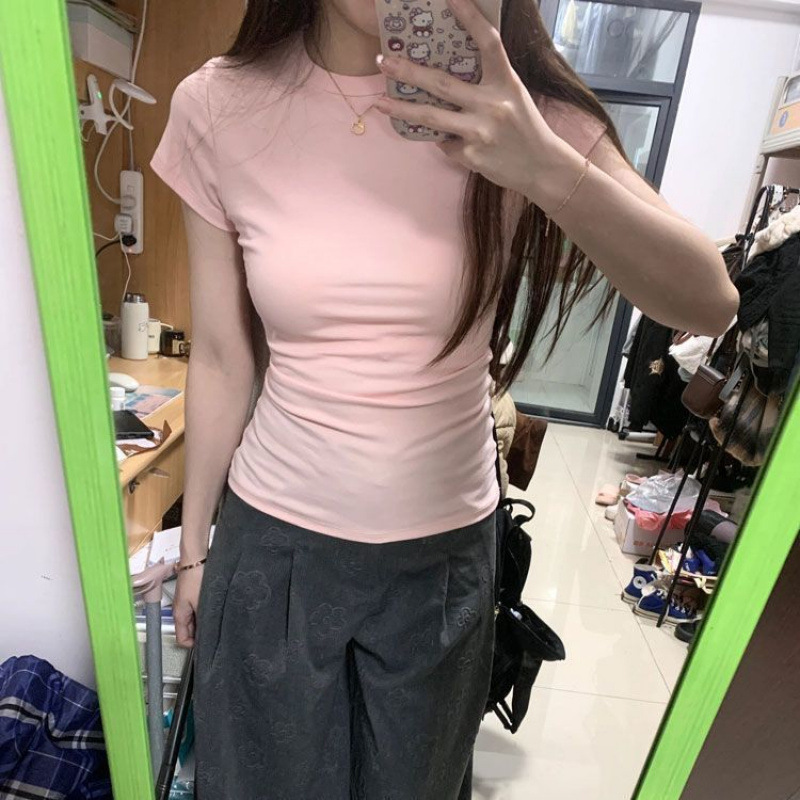 修身打底纯色美式短袖T恤女夏季2025新款显瘦辣妹纯欲风上衣ins潮