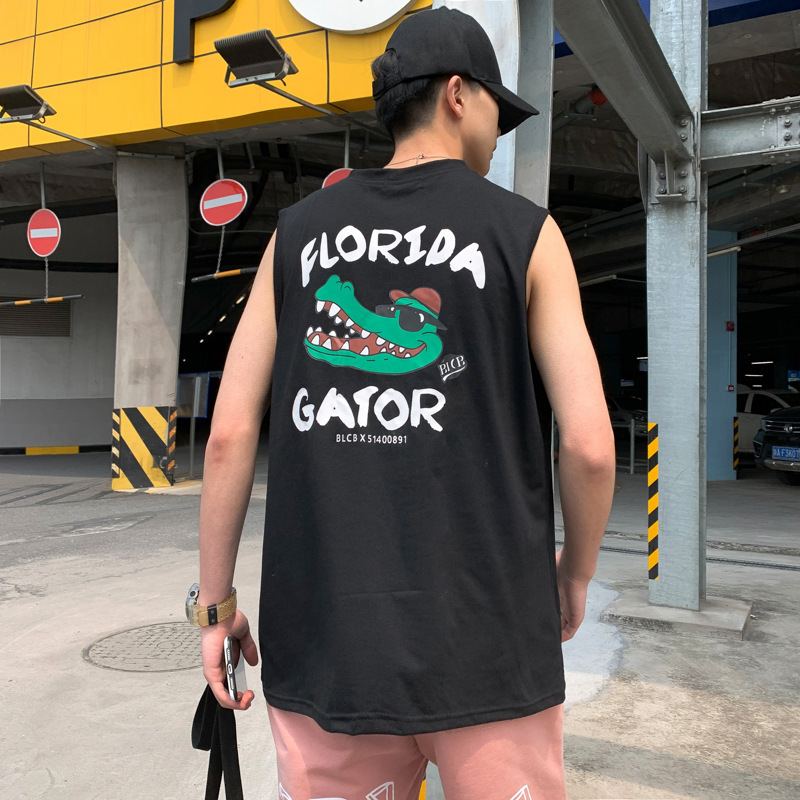 夏季ins潮牌t恤坎肩印花背心男士宽松潮流学生运动无袖打底衫上衣
